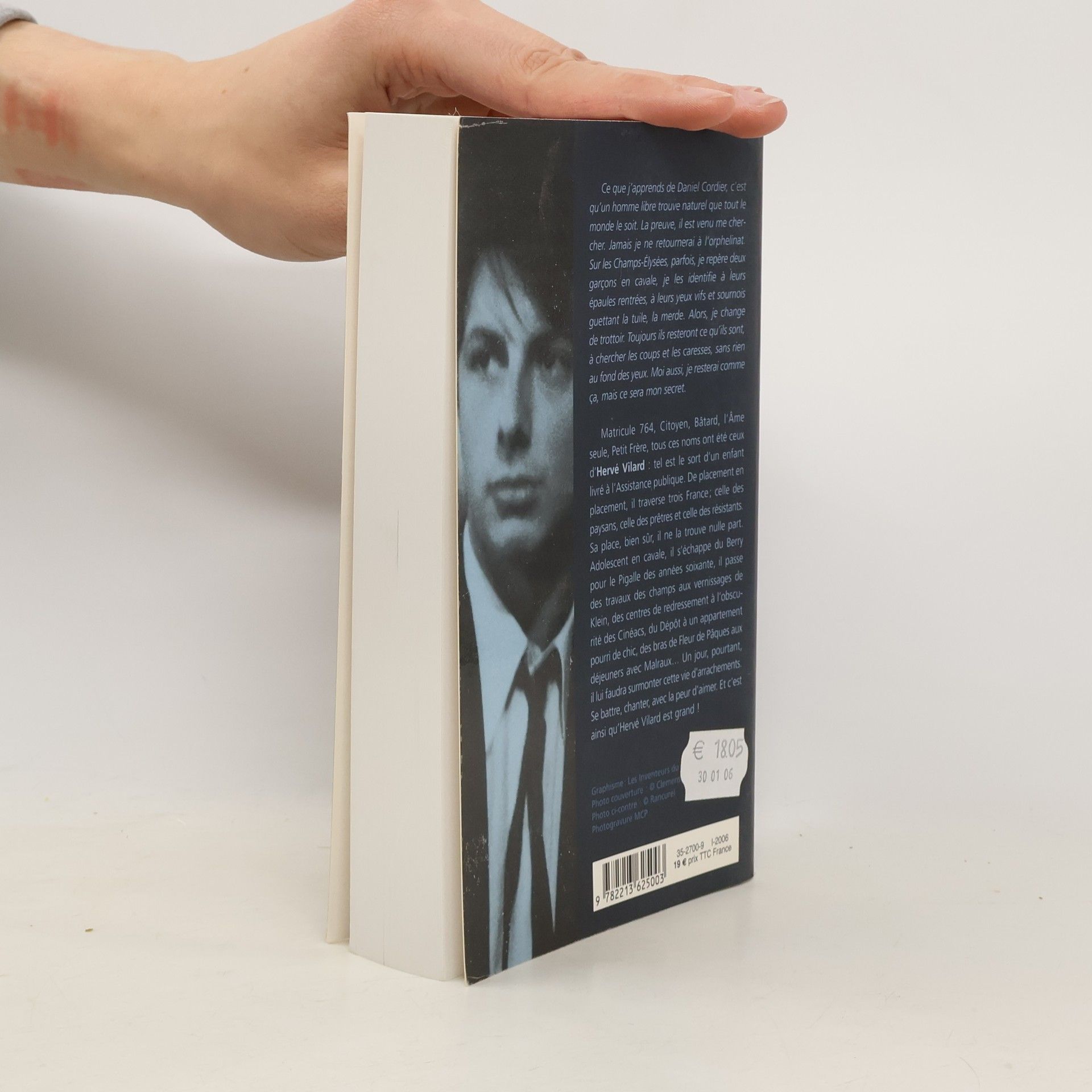 Ce que j’apprends de Daniel Cordier, c’est qu’un homme libre trouve naturel que tout le monde le soit. La preuve, il est venu me chercher. Jamais je ne retournerai à l’orphelinat. Sur les Champs-Elysées, parfois, je repère deux garçons en cavale, je les identifie à leurs épaules rentrées, à leurs yeux vifs et sournois guettant la tuile, la merde. Alors, je change de trottoir. Toujours ils resteront ce qu’ils sont, à chercher les coups et les caresses, sans rien au fond des yeux. Moi aussi, je resterai comme ça, mais ce sera mon secret. Matricule 764, Citoyen, Bâtard, l’Ame seule, Petit Frère, tous ces noms ont été ceux d’ Hervé Vilard : tel est le sort d’un enfant livré à l’Assistance publique. De placement en placement, il traverse trois France ; celle des paysans, celle des prêtres et celle des résistants. Sa place, bien sûr, il ne la trouve nulle part. Adolescent en cavale, il s’échappe du Berry pour le Pigalle des années soixante, il passe des travaux des champs aux vernissages de Klein, des centres de redressement à l’obscurité des Cinéacs, du Dépôt à un appartement pourri de chic, des bras de Fleur de Pâques aux déjeuners avec Malraux… Un jour, pourtant, il lui faudra surmonter cette vie d’arrachements. Se battre, chanter, avec la peur d’aimer. Et c’est ainsi qu’Hervé Vilard est grand !
