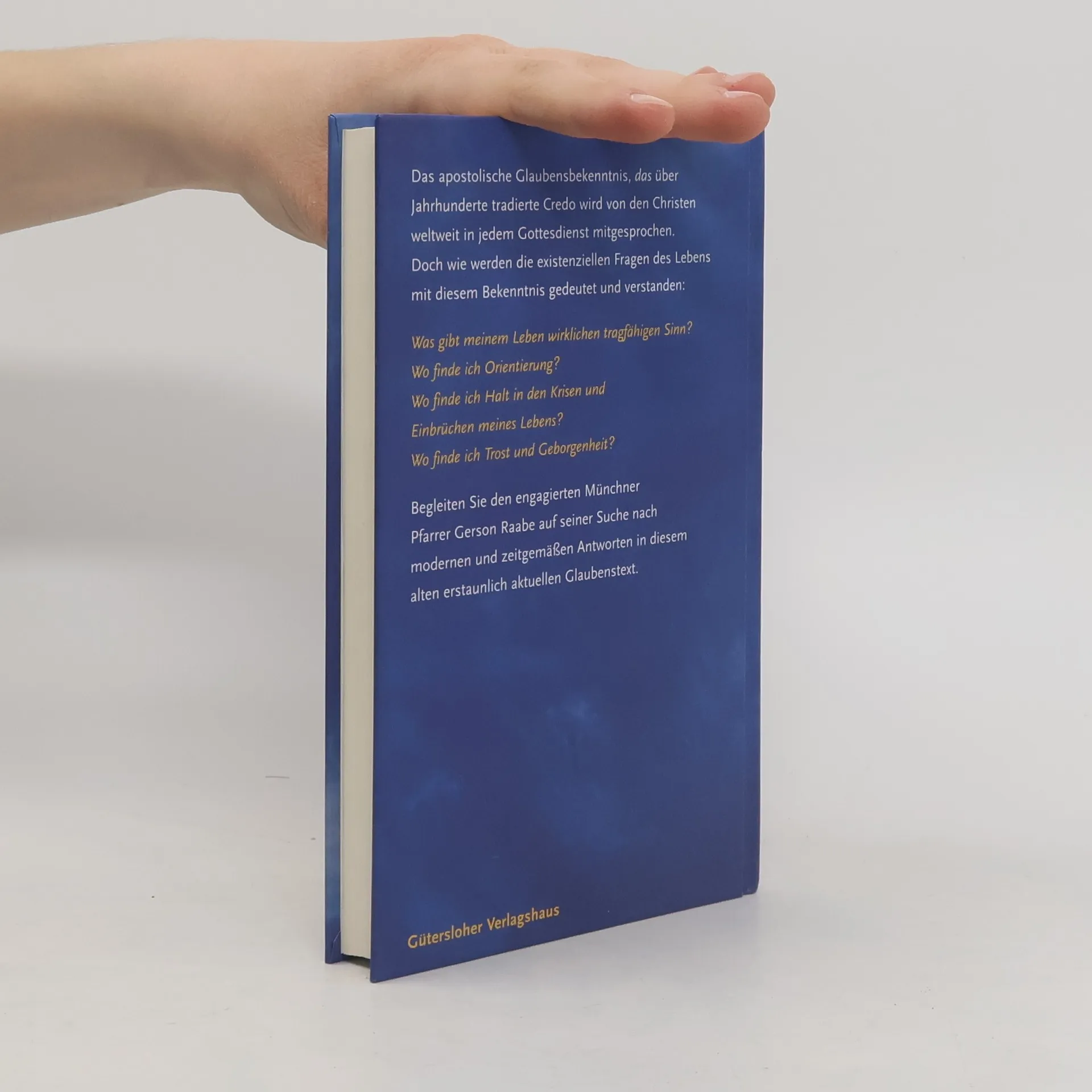 Ganze 22 Zeilen lang, fast 2000 Jahre alt und immer noch lebendig: das Apostolische Glaubensbekenntnis. Ein Text, der von den Christen in aller Welt in jedem Gottesdienst mitgesprochen wird. Gerson Raabe präsentiert eine moderne Auslegung des Glaubenbekenntnisses, erfrischend geschrieben und mit der Feststellung: Glauben ist Lebensgewinn! Seine originellen Interpretationen und Anregungen ermuntern zum Nach- und Weiterdenken.