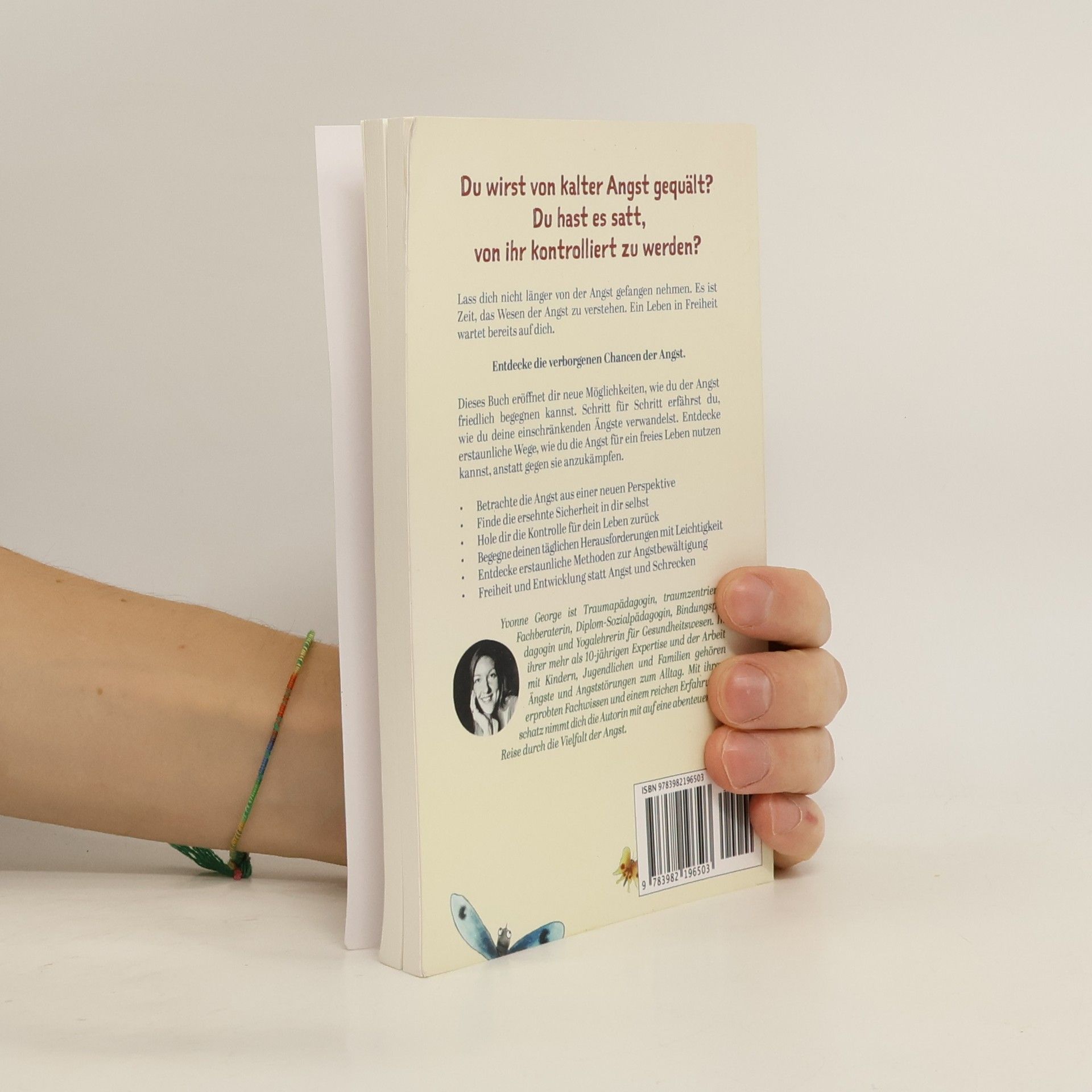 Kontrolliert dich die Angst? Du fühlst dich erschöpft vom ewigen Kampf mit der Furcht? Du bist nicht allein. Allein in Deutschland leiden mehr als 12 Millionen Menschen unter Angststörungen, Tendenz steigend. Willst du dich endlich von der Macht der Angst befreien? Es ist Zeit, die Mauern einzureißen. Dieser einfühlsam und leicht verständliche Ratgeber zeigt dir, wie du die kalte Angst aus einer neuen Perspektive siehst und ihr liebevoll und friedlich im Alltag begegnest. Anschauliche Beispiele und Metaphern sprechen das Unterbewusstsein an und machen auf freundliche Art die verschiedenen Gesichter der Angst greifbar. Entdecke eine bunte Mischung an vielfältigen Übungen und praktischen Tipps für das tägliche Leben und wähle das Passende für deine individuellen Bedürfnisse aus. Das hilft nicht nur, die Angst vor der Angst zu überwinden. Durch eine liebevolle Freundschaft, die sich zwischen der Angst und dir entwickelt, wirst du verborgene Chancen entdecken, die dein Leben auf überraschende Weise bereichern werden. Dieser Ratgeber zeigt Yvonne George ist Traumapädagogin, traumzentrierte Fachberaterin, Diplom-Sozialpädagogin, Bindungspädagogin und Yogalehrerin für Gesundheitswesen. In ihrer mehr als 10-jährigen Expertise und der Arbeit mit Kindern, Jugendlichen und Familien gehören Ängste und Angststörungen zum Alltag. Mit ihrem erprobtem Fachwissen und einem reichen Erfahrungsschatz nimmt dich die Autorin mit auf eine abenteuerliche Reise durch die Vielfalt der Angst. Entspann dich. Lehn dich zurück und genieße die Reise. Ergründe das Wesen der Angst, bringe Licht in die Tiefen des Unbewussten, erweitere liebevoll dein Bewusstsein und entdecke neue Wege. Finde den Schlüssel und öffne den Tresor der Angst. Lass die bunten Schmetterlinge der Lebendigkeit endlich fliegen. Nutze jetzt deine Chance für ein selbstbestimmtes Leben in Freiheit. Denn du hast es verdient.
