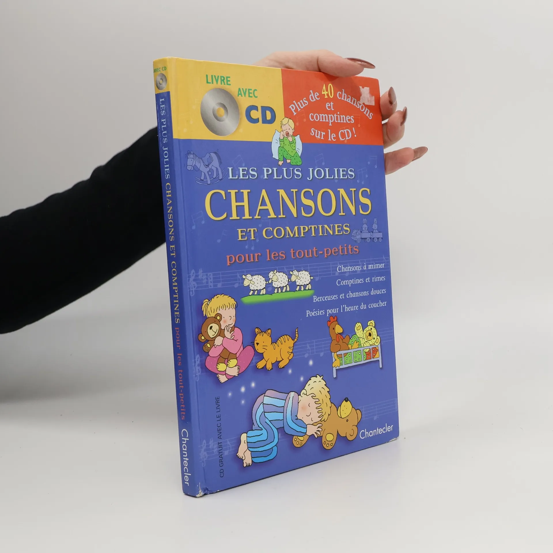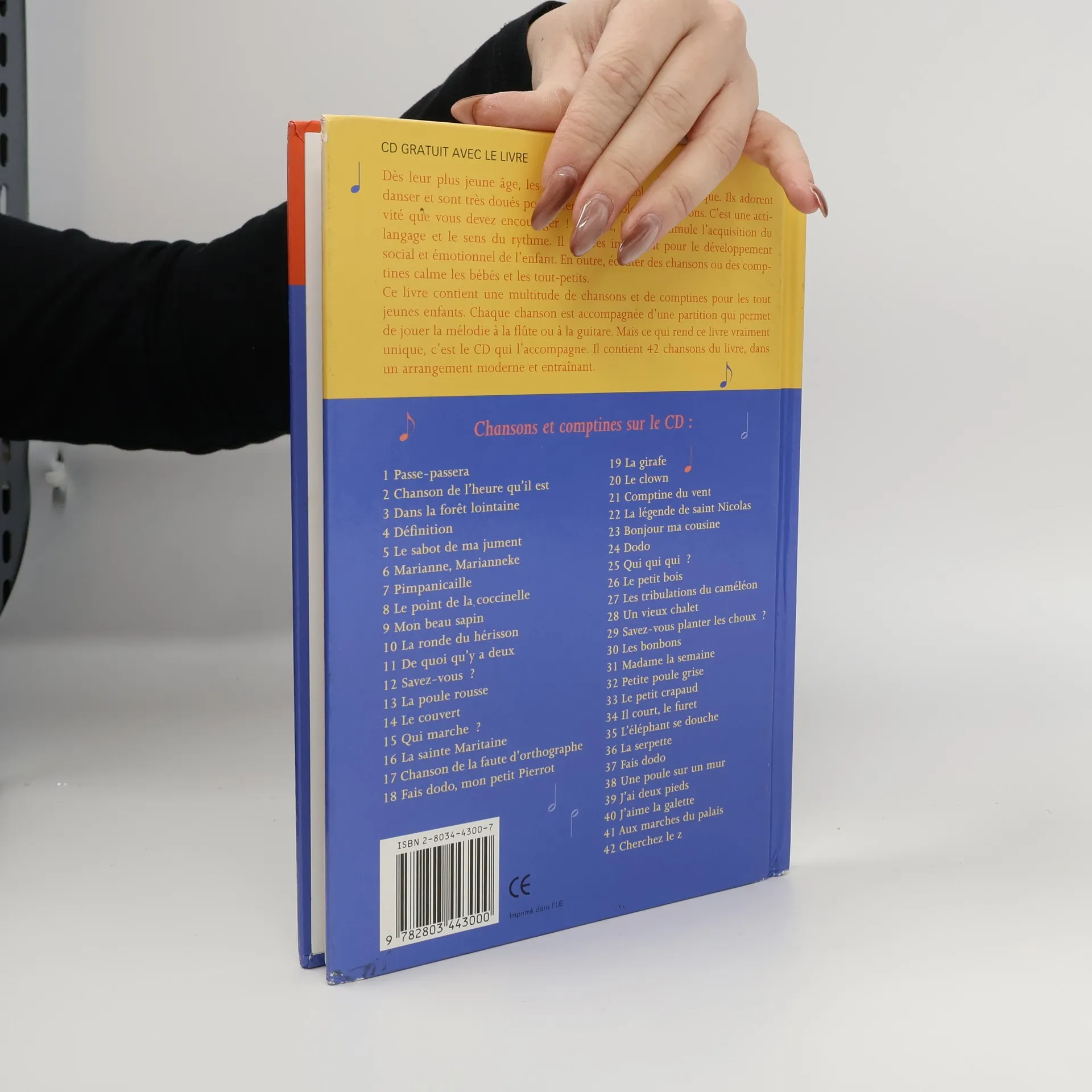 Dès leur plus jeune âge, les enfants sont sensibles à la musique. Ils adorent danser et sont très doués pour retenir les paroles des chansons. C'est une activité que vous devez encourager ! En effet, le chant stimule l'acquisition du langage et le sens du rythme. Il est très important pour le développement social et émotionnel de l'enfant. En outre, écouter des chansons ou des comptines calme les bébés et les tout-petits. Ce livre contient une multitude de chansons et de comptines pour les tout jeunes enfants. Chaque chanson est accompagnée d'une partition qui permet de jouer la mélodie à la flûte ou à la guitare. Mais ce qui rend ce livre vraiment unique, c'est le CD qui l'accompagne. Il contient 42 chansons du livre, dans un arrangement moderne et entraînant.