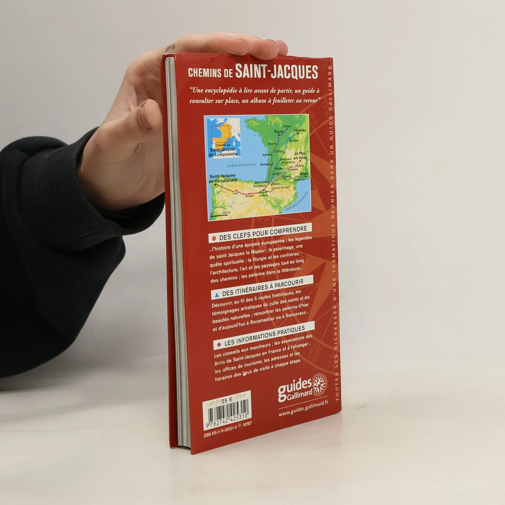 Des clefs pour comprendre...l'histoire d'une épopée européenne ; les légendes de saint Jacques le Majeur ; le pèlerinage, une quête spirituelle ; la liturgie et les confréries ; l'architecture, l'art et les paysages tout au long des chemins ; les pèlerins dans la littérature... Découvrir, au fil des 5 routes historiques, les témoignages artistiques du culte des saints et les beautés naturelles ; rencontrer les pèlerins d'hier et d'aujourd'hui à Rocamadour ou à Roncevaux... Les conseils aux marcheurs ; les associations des Amis de Saint-Jacques en France et à l'étranger ; les offices de tourisme, les adresses et les horaires des lieux de visite à chaque étape.