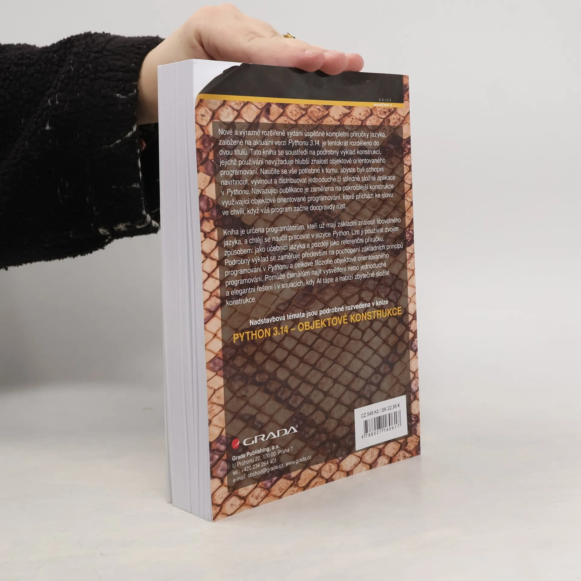 Nové a výrazně rozšířené vydání úspěšné kompletní příručky jazyka, založené na aktuální verzi Pythonu 3.14, je tentokrát rozděleno do dvou titulů. Tato kniha se soustředí na podrobný výklad konstrukcí, jejichž používání nevyžaduje hlubší znalost objektově orientovaného programování. Naučíte se vše potřebné k tomu, abyste byli schopni navrhnout, vyvinout a distribuovat jednoduché či středně složité aplikace v Pythonu. Navazující publikace je zaměřena na pokročilejší konstrukce využívající objektově orientované programování, které přichází ke slovu ve chvíli, když váš program začne doopravdy růst. Kniha je určena všem programátorům, kteří už mají základní znalosti libovolného jazyka, nyní se ale chtějí naučit pracovat v jazyce Python. Lze ji používat dvojím způsobem: jako učebnici jazyka a později jako referenční příručku. Podrobný výklad se zaměřuje především na pochopení základních principů programování v Pythonu a celkové filozofie objektově orientovaného programování. Pomůže čtenářům najít vysvětlení nebo jednoduché a elegantní řešení i v situacích, kdy AI tápe a nabízí zbytečně složité konstrukce. Nadstavbová témata jsou podrobně rozvedena v knize Python 3.14 – Objektové konstrukce