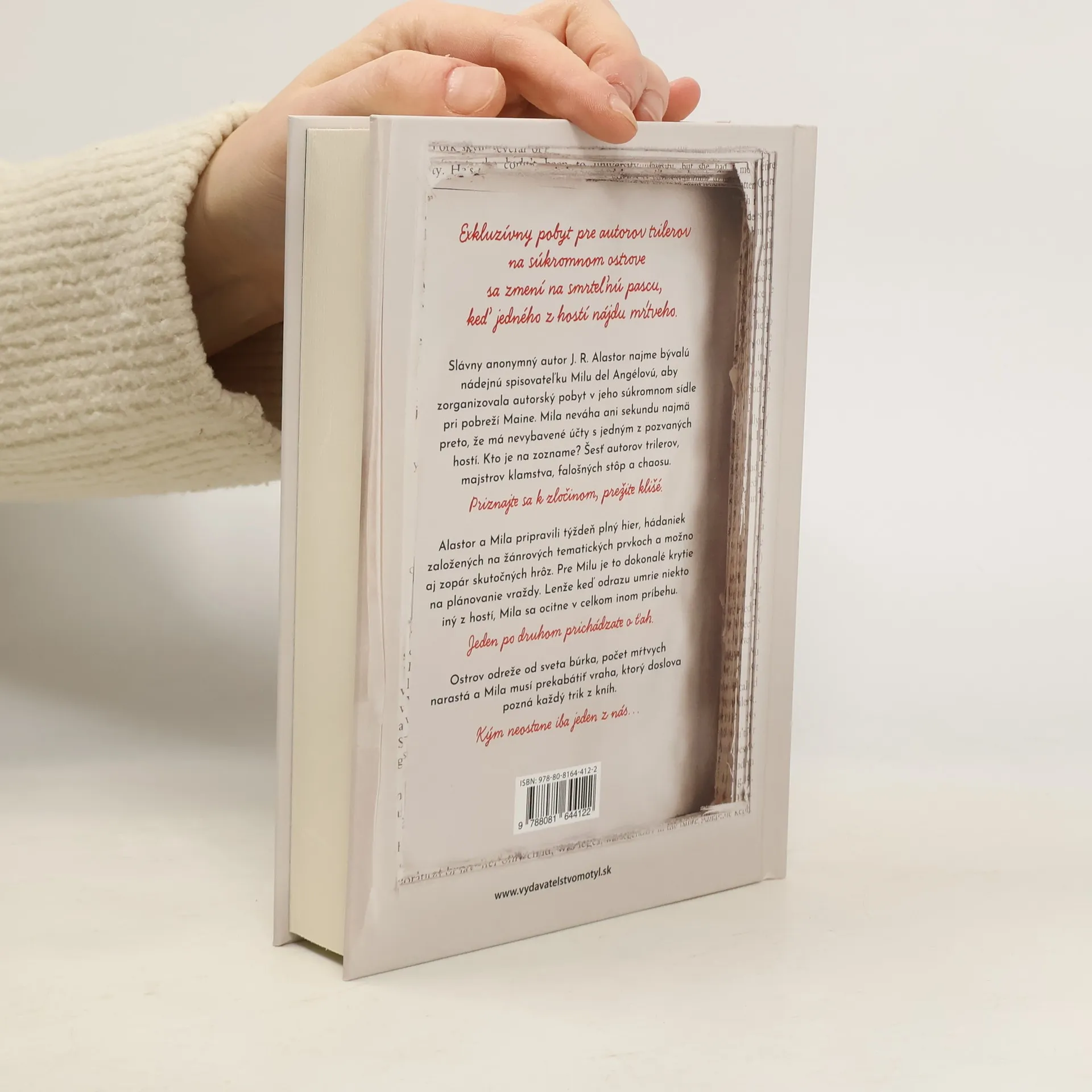 Exkluzívny pobyt pre autorov trilerov na súkromnom ostrove sa zmení na smrteľnú pascu, keď jedného z hostí nájdu mŕtveho. Slávny anonymný autor J. R. Alastor najme bývalú nádejnú spisovateľku Milu del Angélovú, aby zorganizovala autorský pobyt v jeho súkromnom sídle pri pobreží Maine. Mila neváha ani sekundu najmä preto, že má nevybavené účty s jedným z pozvaných hostí. Kto je na zozname? Šesť autorov trilerov, majstrov klamstva, falošných stôp a chaosu.