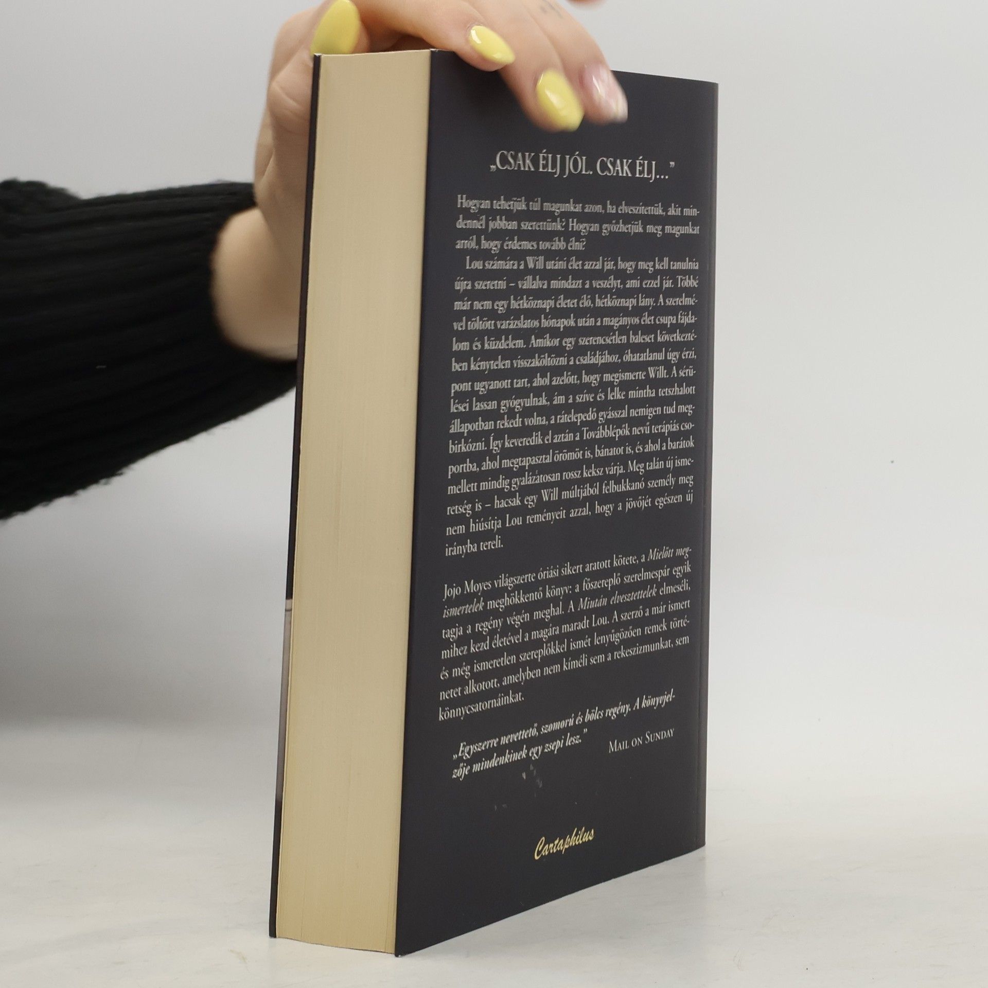 AMIKOR EGY TÖRTÉNET VÉGET ÉR, MINDIG ELKEZDŐDIK EGY ÚJABB… Hogyan lehet túllépni a legnagyobb veszteségen? Lou számára Will halála után az élet újra szeretni tanulásával kezdődik, ami számos veszéllyel jár. A varázslatos hónapok után a magány fájdalmas küzdelemmé válik. Egy baleset következtében vissza kell térnie családjához, és úgy érzi, mintha minden visszaállt volna az eredeti állapotába, mielőtt Willt megismerte. A sérülései gyógyulnak, de a szíve és lelke tetszhalott állapotban marad, képtelen megbirkózni a gyásszal. Ekkor csatlakozik a Továbblépők terápiás csoporthoz, ahol örömöt és bánatot is megtapasztal, miközben barátokra lel, és a csoport híresen rossz kekszeivel is találkozik. Talán új ismeretség is vár rá, de Will múltjából felbukkanó személy mindent megváltoztathat. Jojo Moyes világszerte elismert művében Lou története bontakozik ki, amelyben a már ismert és új szereplők egy lenyűgöző, érzelmekkel teli kalandot élnek át, amely nem kíméli a szívünket és a könnycsatornáinkat sem.