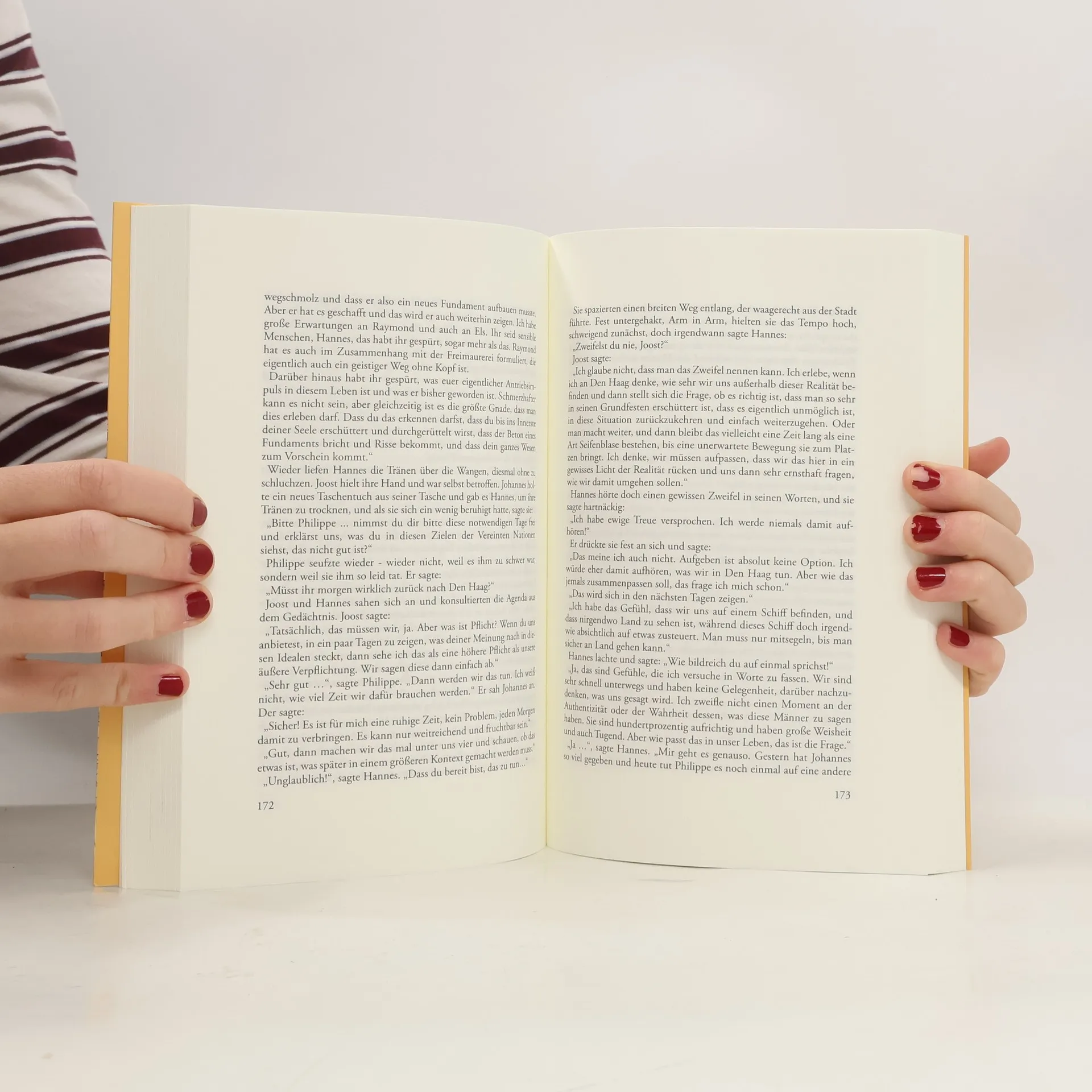 “… Wir müssen irgendwie unsere eigentliche Beziehung wiederfinden, dies ist wirklich so unecht! Ich denke, das Einzige, was wir tun können, ist, es zu benennen. Dann wird es wohl vorübergehen. Es ist auch seltsam, wenn man immer nur an einem Tisch im Corona sitzt und über Politik und Ideale spricht und dann plötzlich, nach einem Spaziergang am Strand, wie zwei Verliebte zusammen in einer Wohnung ankommt. Wohin soll das denn führen?” Die gelehrte Idealistin Hannes und der Politiker Joost finden zueinander und lernen, hinter die Maske von Politik und Idealismus zu schauen.