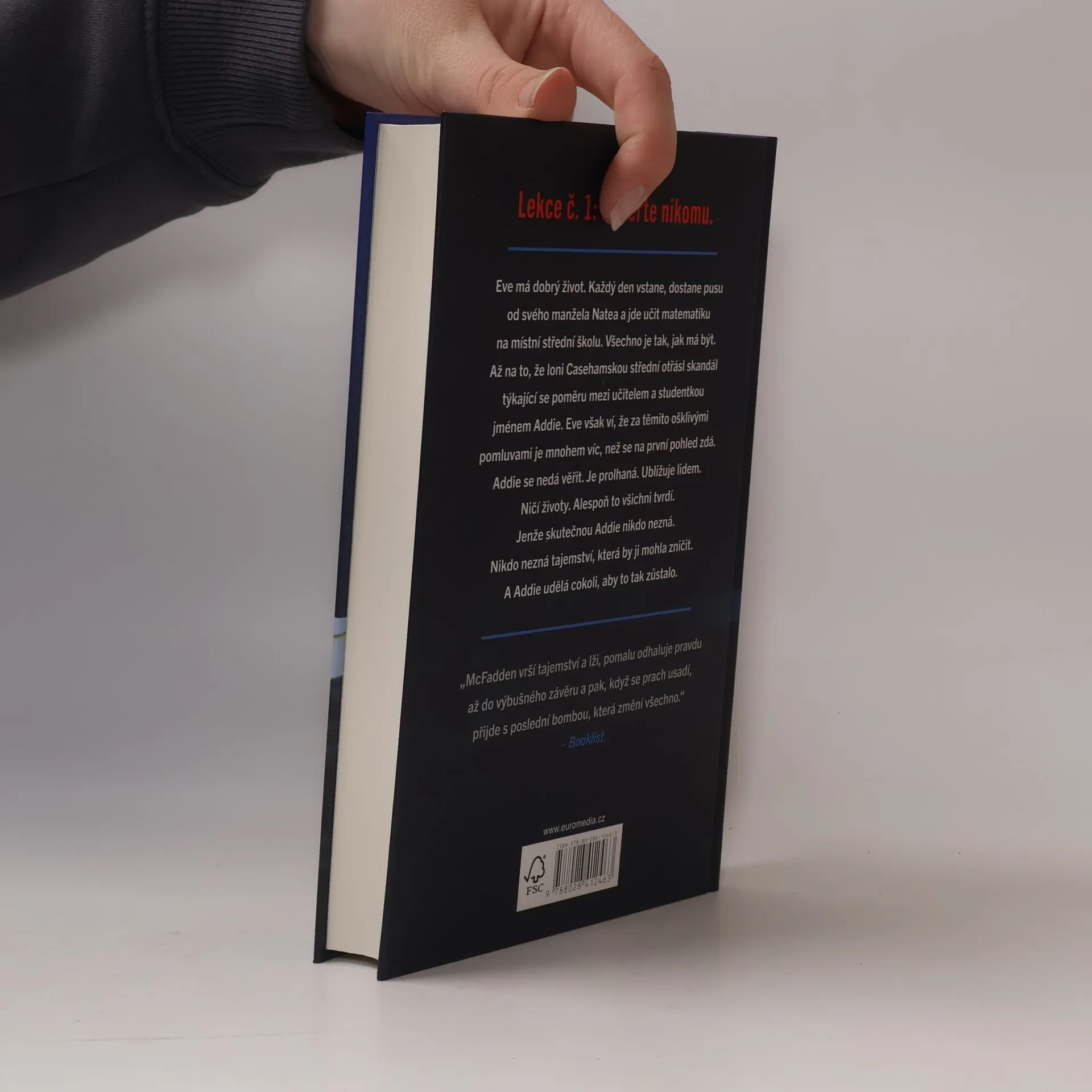 Eve má dobrý život. Každý den vstane, dostane pusu od svého manžela Natea a jde učit matematiku na místní střední školu. Všechno je tak, jak má být. Až na to, že loni casehamskou střední otřásl skandál týkající se poměru mezi učitelem a studentkou jménem Addie. Eve však ví, že za těmito ošklivými pomluvami je mnohem víc, než se na první pohled zdá. Addie se nedá věřit. Je prolhaná. Ubližuje lidem. Ničí životy. Alespoň to všichni tvrdí. Jenže skutečnou Addie nikdo nezná. Nikdo nezná tajemství, která by ji mohla zničit. A Addie udělá cokoli, aby to tak zůstalo.