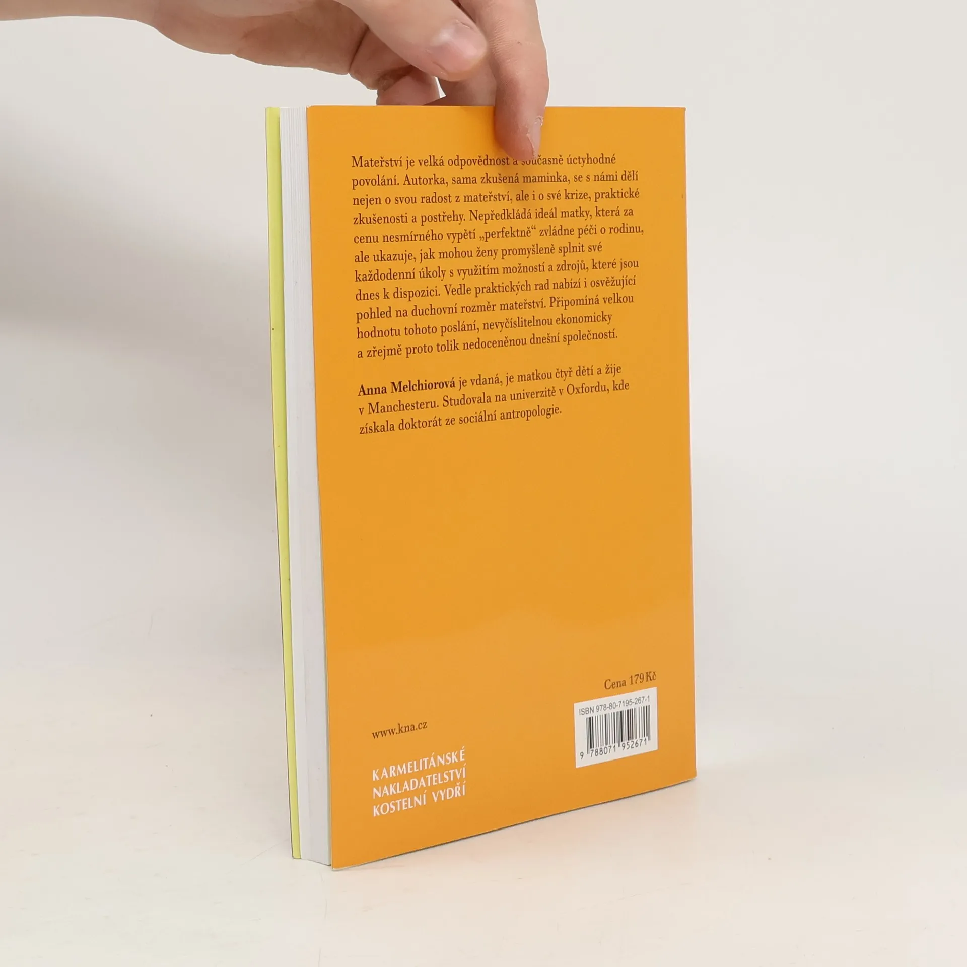 Smysl života a mateřství, Duchovní stránka mateřství,Vztah k partnerovi a k dětem, Jak zvládat tolik věcí i lidí, Jak milovat a odpouštět, Jak neztrácet naději Mateřství je velká odpovědnost a současně úctyhodné povolání. Autorka, sama zkušená maminka, se s námi dělí nejen o svou radost z mateřství, ale i o své krize, praktické zkušenosti a postřehy. Nepředkládá ideál matky, která za cenu nesmírného vypětí „perfektně“ zvládne péči o rodinu, ale ukazuje, jak mohou ženy promyšleně splnit své každodenní úkoly s využitím možností a zdrojů, které jsou dnes k dispozici. Vedle praktických rad nabízí i osvěžující pohled na duchovní rozměr mateřství. Připomíná velkou hodnotu tohoto poslání, nevyčíslitelnou ekonomicky a zřejmě proto tolik nedoceněnou dnešní společností.