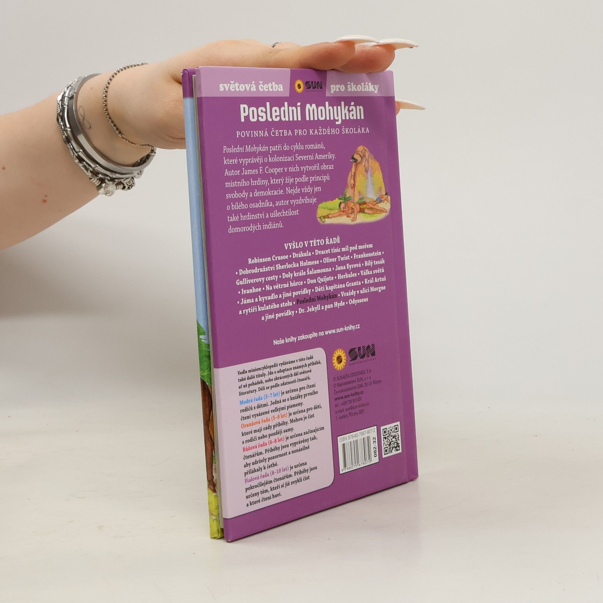 Světová četba pro školáky je edice bohatě ilustrovaných, citlivě převyprávěných a zkrácených děl světové literatury. Poslední Mohykán patří do cyklu románů, které vyprávějí o kolonizaci Severní Ameriky. Autor James F. Cooper v nich vytvořil obraz místního hrdiny, který žije podle principů svobody a demokracie. Nejde vždy jen o bílého osadníka, autor vyzdvihuje také hrdinství a ušlechtilost domorodých indiánů.