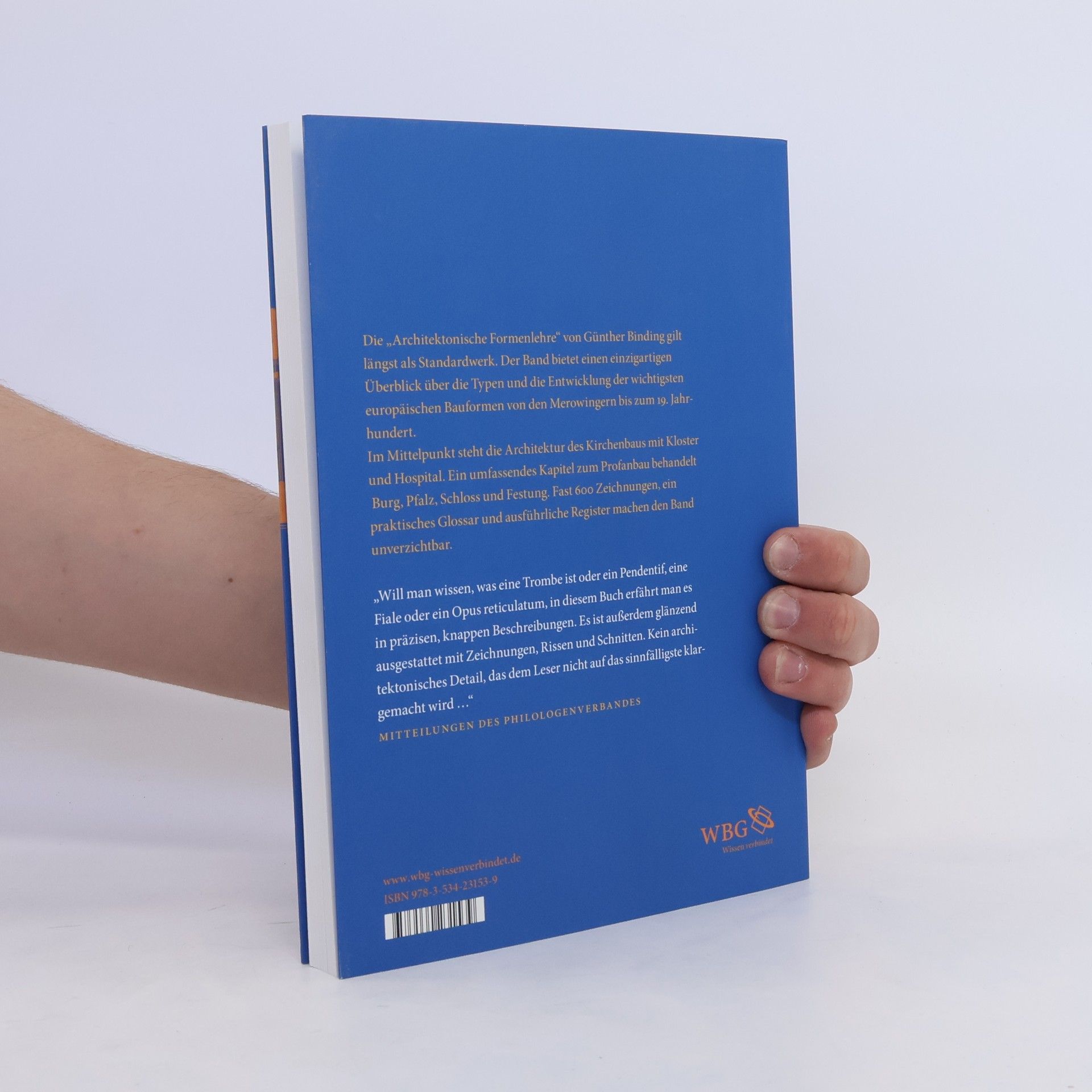 Die ›Architektonische Formenlehre‹ von Günther Binding gilt längst als Standardwerk. Der Band bietet einen einzigartigen Überblick über die Typen und die Entwicklung der wichtigsten europäischen Bauformen von den Merowingern bis zum 19. Jahrhundert. Im Mittelpunkt steht die Architektur des Kirchenbaus mit Kloster und Hospital. Ein umfassendes Kapitel zum Profanbau behandelt Burg, Pfalz, Schloss und Festung. Fast 600 Zeichnungen, ein praktisches Glossar und ausführliche Register machen den Band unverzichtbar.