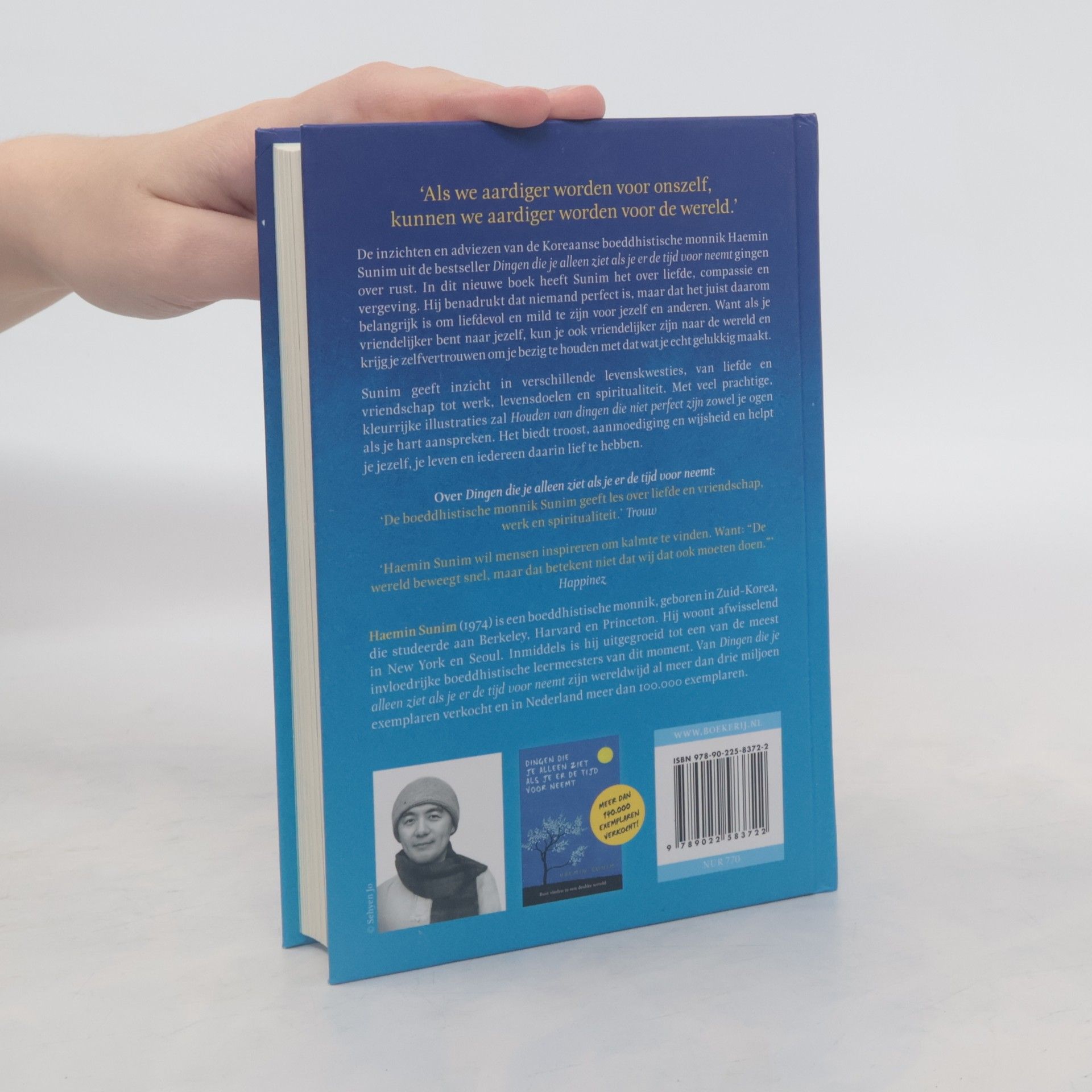 ‘Als we aardiger worden voor onszelf, kunnen we aardiger worden voor de wereld.’ Haemin Sunim De inzichten en adviezen van de Koreaanse boeddhistische monnik Haemin Sunim uit de bestseller Dingen die je alleen ziet als je er de tijd voor neemt gingen over rust. In dit nieuwe boek heeft Sunim het over liefde, compassie en vergeving. Hij benadrukt dat niemand perfect is, maar dat het juist daarom belangrijk is om liefdevol en mild te zijn voor jezelf en anderen. Want als je vriendelijker bent naar jezelf, kun je ook vriendelijker zijn naar de wereld en krijg je zelfvertrouwen om je bezig te houden met dat wat je echt gelukkig maakt. Sunim geeft inzicht in verschillende levenskwesties, van liefde en vriendschap tot werk, levensdoelen en spiritualiteit. Met veel prachtige, kleurrijke illustraties zal Houden van dingen die niet perfect zijn zowel je ogen als je hart aanspreken. Het biedt troost, aanmoediging en wijsheid en helpt je jezelf, je leven en iedereen daarin lief te hebben.