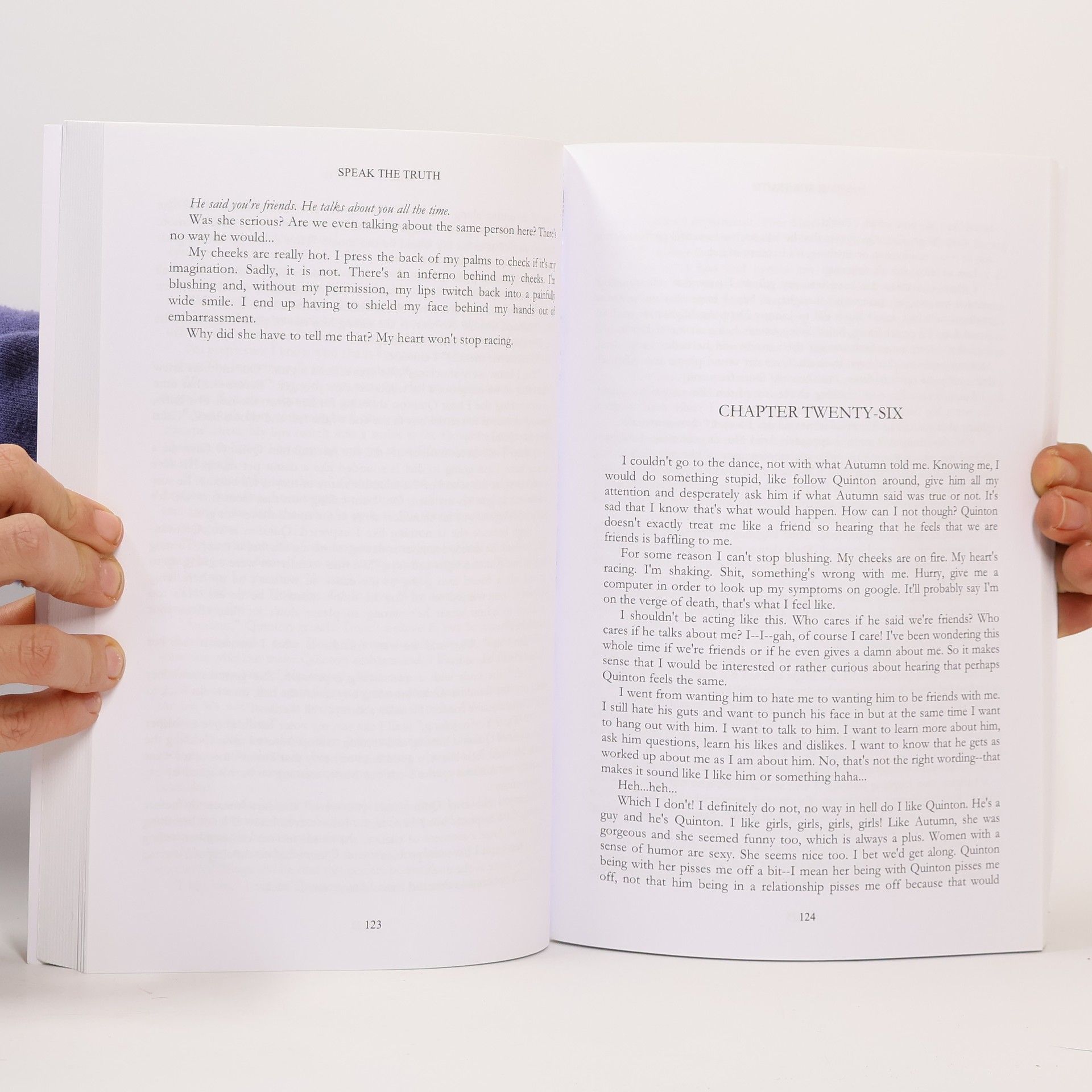 Some enemies start out as friends. Some friends start out as enemies. Some lovers start out as an evil nemesis from the fiery pits of hell. Prince Aron Vaughn hates the annoying overachiever Quinton Underwood, and the feeling is absolutely mutual. Aron wants nothing more than to have Quinton expelled from their luxurious private academy. All he has to do is ask his father, the king, to be rid of his newfound arch-nemesis, but doing so will only prove that Aron is nothing without his title. He's determined to defeat Quinton on his own! However, as the two boys constantly butt heads over the years, they come to learn about one another, thus changing their once strenuous relationship and leading them into new and unknown territory. Are they enemies? Are they friends? Can they ever be more? Warning: Bullying With over 2 million views and 40k subscribers, Speak the Truth is a serialized webnovel about a coming of age romance between two boys who have to learn to accept themselves, their feelings for each other, and grow up under the harsh scrutiny of others. This is the first of three volumes. Speak the Truth also has a comic adaptation of the first volume available on tapas.io.