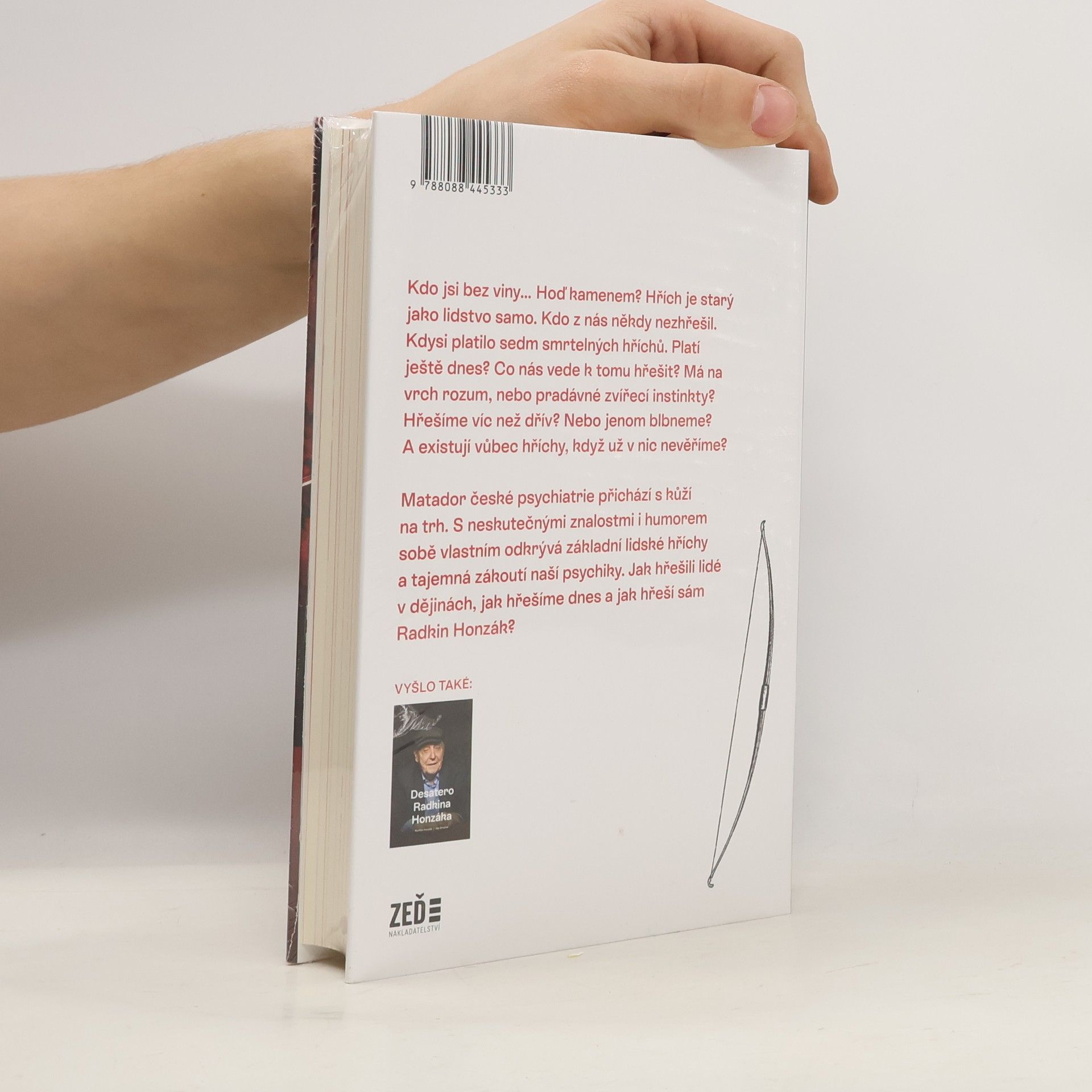 Kdo jsi bez viny… Hoď kamenem? Hřích je starý jako lidstvo samo. Kdo z nás někdy nezhřešil. Kdysi platilo sedm smrtelných hříchů. Platí ještě dnes? Co nás vede k tomu hřešit? Má na vrch rozum, nebo pradávné zvířecí instinkty? Hřešíme víc než dřív? Nebo jenom blbneme? A existují vůbec hříchy, když už v nic nevěříme? Matador české psychiatrie přichází s kůží na trh. S neskutečnými znalostmi i humorem sobě vlastním odkrývá základní lidské hříchy a tajemná zákoutí naší psychiky. Jak hřešili lidé v dějinách, jak hřešíme dnes a jak hřeší sám Radkin Honzák?