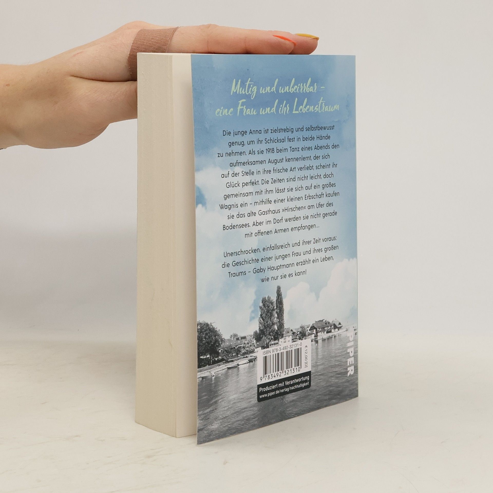 Die junge Anna ist zielstrebig und selbstbewusst genug, um ihr Schicksal fest in beide Hände zu nehmen. Als sie 1918 beim Tanz in den Mai den aufmerksamen August kennenlernt, der sich sofort in ihre frische Art verliebt, scheint ihr Glück perfekt. Die Zeiten sind nicht leicht, doch gemeinsam mit ihm lässt sie sich auf ein großes Wagnis ein – mithilfe einer kleinen Erbschaft kaufen sie das alte Gasthaus »Hirschen« am Ufer des Bodensees. Doch sie werden nicht gerade mit offenen Armen empfangen … Unerschrocken, einfallsreich und ihrer Zeit voraus: die Geschichte einer jungen Frau und ihres Traums! »Gaby Hauptmann entführt mich an einen meiner Sehnsuchtsorte: ihre Bodensee-Saga ist ein mitreißendes, spannendes und ganz und gar emotionales Lesevergnügen, das man sich nicht entgehen lassen darf.« Gisa Pauly