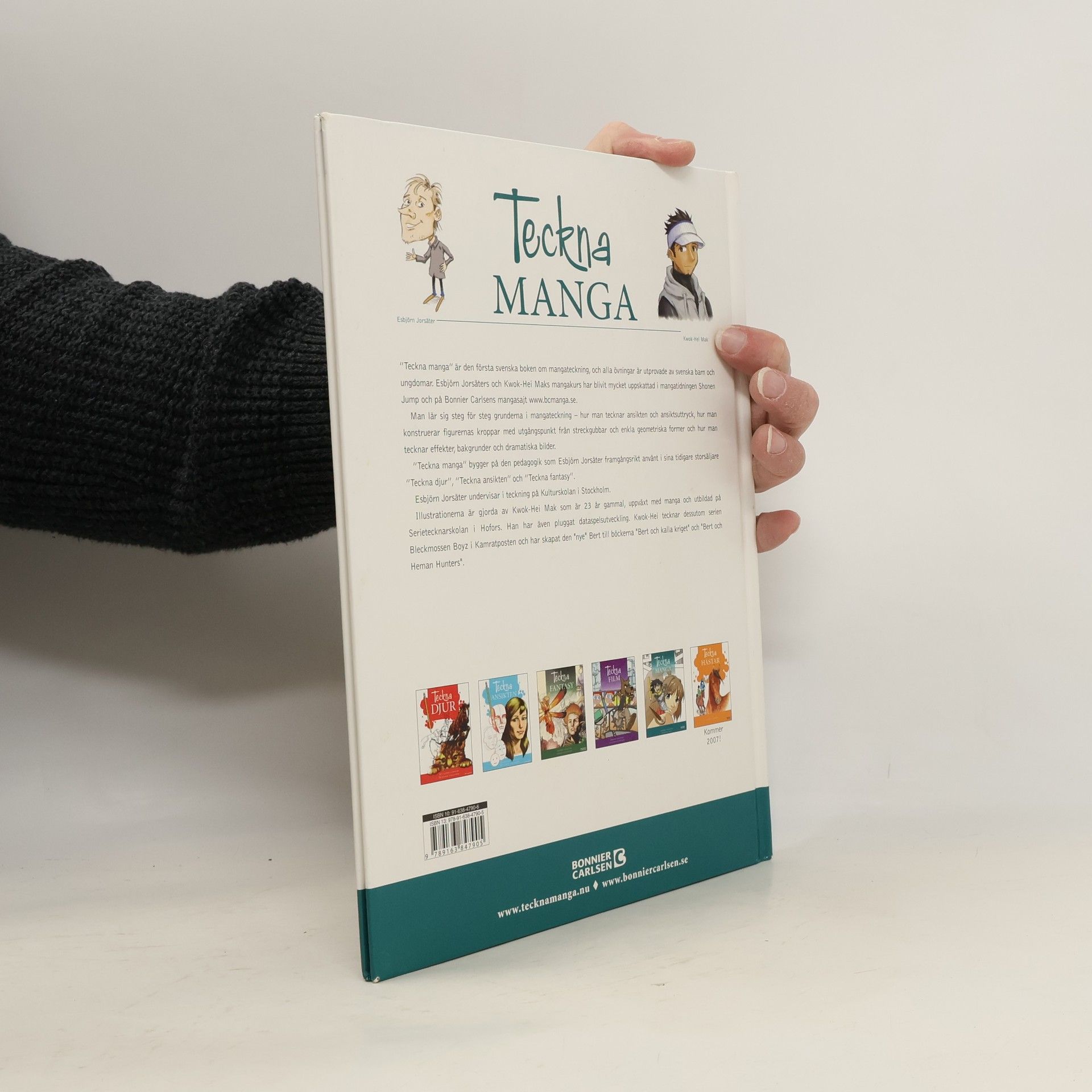 "Teckna manga" är den första svenska boken om mangateckning, och alla övningar är utprovade av svenska barn och ungdomar. Esbjörn Jorsäters och Kwok-Hei Kajs mangakurs har blivit mycket uppskattad i mangatidningen Shonen Jump och på Bonnier Carlsens mangasajt www.bcmanga.se . Man lär sig steg för steg grunderna i mangateckning - hur man tecknar ansikten och ansiktsuttryck, hur man konstruerar figurernas kroppar med utgångspunkt från streckgubbar och enkla geometriska former och hur man tecknar effekter, bakgrunder och dramatiska bilder. "TEckna manga" bygger på den pedagogik som Esbjörn Jorsäter framgångsrikt använt i sina tidigare storsäljare "Teckna djur", "Teckna ansikten" och Teckna fantasy". Esbjörn Jorsäter undervisar i teckning på Kulturskolan i Stockholm. Illustrationerna är gjorda av Kwok-Hei Mak som är 23 år gammal, uppväxt med manga och utbildad på Serietecknarskolan i Hofors. Han har även pluggat dataspelsutveckling. Kwok-Hei tecknar dessutom serien Bleckmossen Boyz i Kamratposten och har skapat den "nye" Bert till böckerna "Bert och kalla kriget" och "Bert och Heman Hunters".