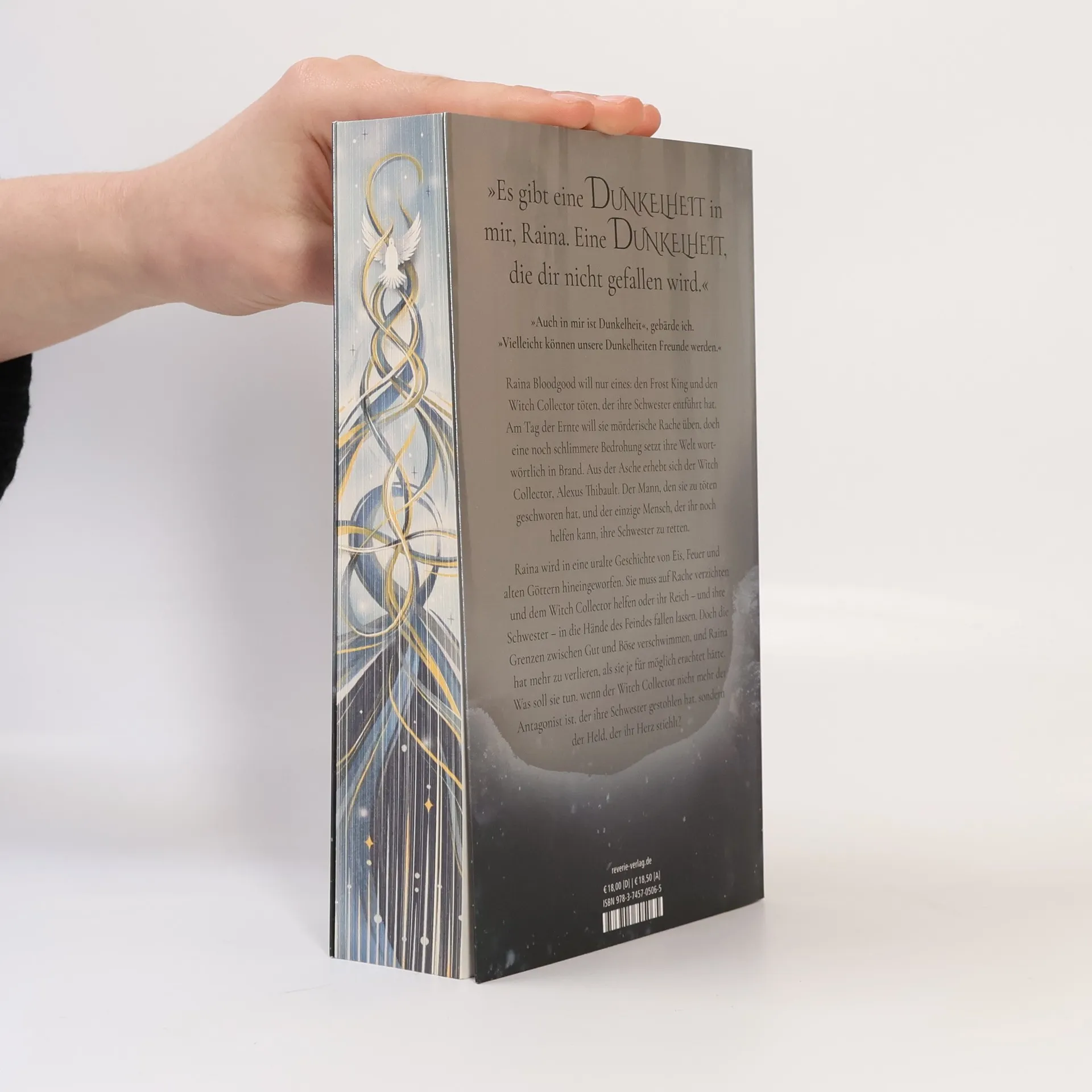 „Es gibt Dunkelheit in mir,Raina. Eine Dunkelheit, die dir nicht gefallen wird.“„In mir ist auch Dunkelheit“, gebärde ich. „Vielleicht können unsere Dunkelheiten Freunde sein.“Raina Bloodgood will nur eines: den Frost King und den Witch Collector töten, der ihre Schwester entführt hat. Am Tag der Ernte will sie mörderische Rache üben, doch eine noch schlimmere Bedrohung setzt ihre Welt wortwörtlich in Brand. Aus der Asche erhebt sich der Witch Collector, Alexus Thibault. Der Mann, den sie zu töten geschworen hat, und der einzige Mensch, der ihr noch helfen kann, ihre Schwester zu retten.Raina wird in eine uralte Geschichte von Eis, Feuer und alten Göttern hineingeworfen. Sie muss auf Rache verzichten und dem Witch Collector helfen oder ihr Reich - und ihre Schwester - in die Hände des Feindes fallen lassen. Doch die Grenzen zwischen Gut und Böse verschwimmen, und Raina hat mehr zu verlieren, als sie je für möglich erachtet hätte. Was soll sie tun, wenn der Witch Collector nicht mehr der Antagonist ist, der ihre Schwester gestohlen hat, sondern der Held, der ihr Herz stiehlt?