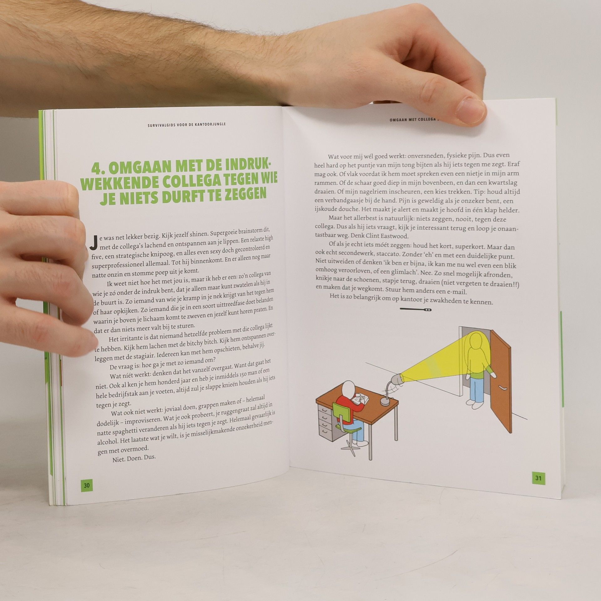 In deze praktische gids determineert Japke-d. Bouma alle kantoortypes en hun habitat op genadeloze en minutieuze wijze. Waar jagen ze op, wat drijft ze, op wie parasiteren ze, met wie flirten ze? Wie kan het beste met wie en welke tijgers moet je kost wat kost te vriend houden? Lees dit boek, observeer nauwkeurig en word de koning van de kantoorjungle.