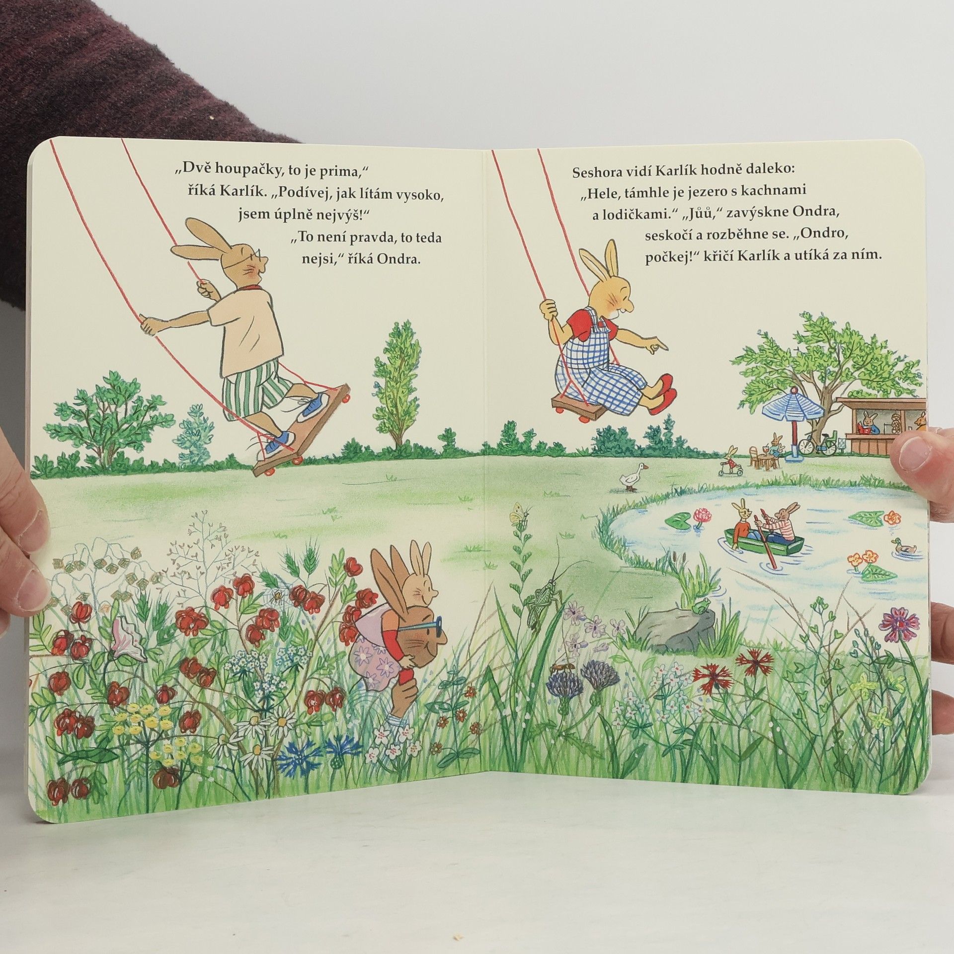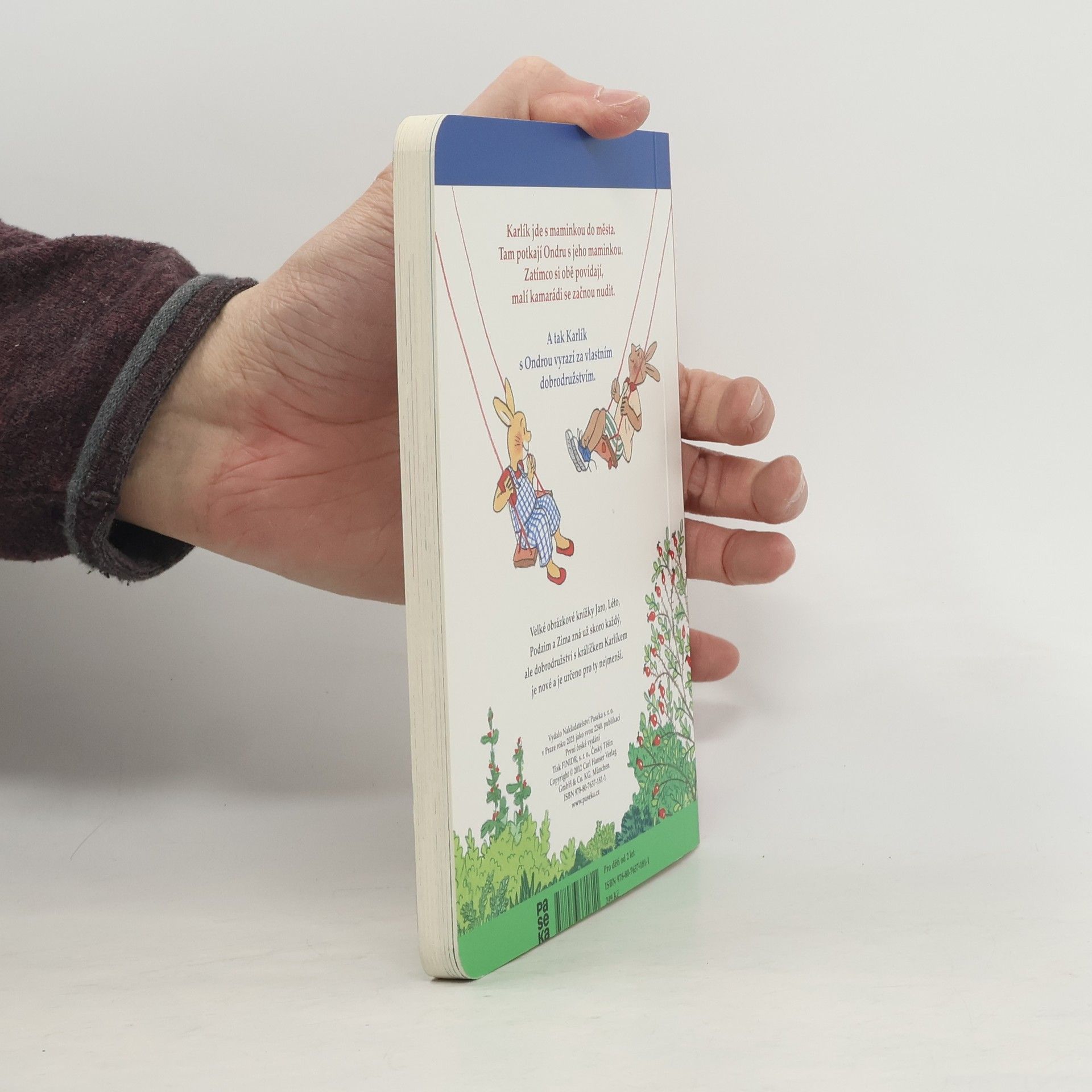 Velké obrázkové knížky Jaro, Léto, Podzim a Zima zná už skoro každý, ale dobrodružství s králíčkem Karlíkem je nové a je určeno pro ty nejmenší. Hrdina Karlík jde s maminkou do města. Tam potkají Ondru s jeho maminkou. Zatímco si obě povídají, malí kamarádi se začnou nudit. A tak Karlík s Ondrou vyrazí na průzkum. Malá dobrodružství všedního dne jsou srozumitelná i pro ty nejmenší – spojí si je snadno s tím, co znají. Komentovat je může dospělý i dítě samo. Posiluje se tak jeho zkušenost i slovní zásoba. Na živých a vtipných kresbách si už dvouleté dítě všimne každé maličkosti. Jednoduchý text může být úvodem k budoucímu předčítání.