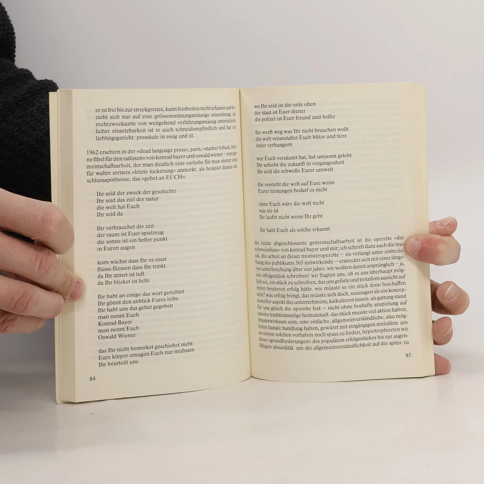 Der Schwerpunkt der Aufsätze des Bandes liegt auf dem Entstehen einer „experimentellen“ Literatur in den 1950er Jahren, die damals nur in kleinen Kreisen und in wenig bekannten Zeitschriften diskutiert und publiziert wurde, dann aber ab Anfang der 1960er Jahre ein immer größeres Publikum erreichte. Die Autoren skizzieren in den 15 Aufsätzen und Texten des Bandes die Entwicklung der konkreten und avantgardistischen Literatur der 1950er Jahre.