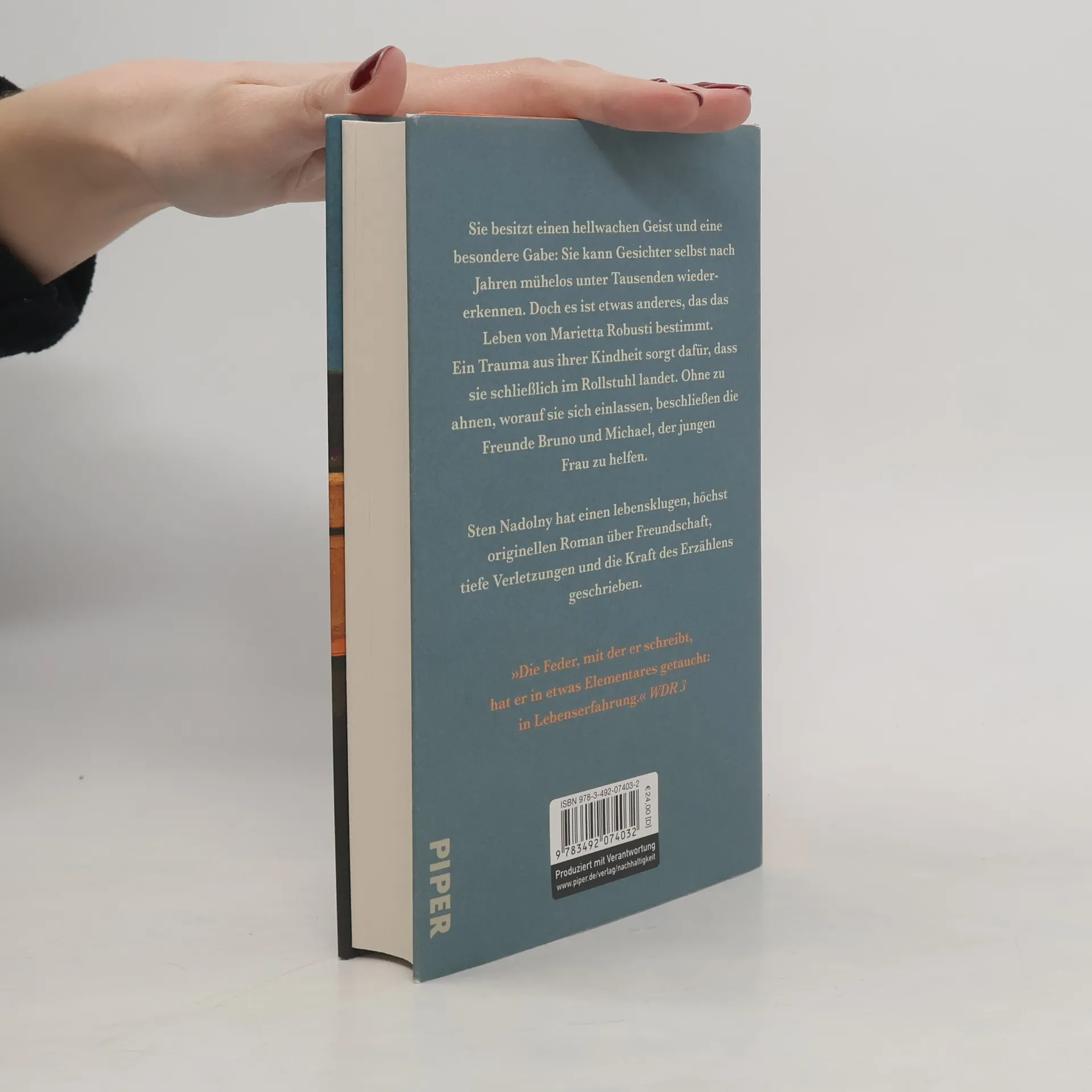 Über die Kraft der Kunst und der lebenslangen FreundschaftDer Schauspieler Bruno und sein Freund Michael, Schriftsteller, lernen auf einer Bahnreise die junge Marietta kennen. Die Kunststudentin ist merkwürdig unruhig und scheint vor etwas auf der Flucht zu sein. Spontan nehmen sich Bruno und Michael ihrer an und begleiten sie bis nach Venedig, wo sie nach wenigen Tagen einfach verschwindet. Erst Jahre später begegnet Michael ihr auf einer Lesung wieder. Diese Begegnung ist der Beginn einer Fürsorge für eine traumatisierte Frau, deren Geschichte auch die Lebenswege von Michael und Bruno verändert.Sten Nadolny hat einen klugen, hintersinnigen Roman über lange Freundschaften, tiefe Versehrungen und die Kraft des Erzählens geschrieben.»Sten Nadolny ist ein Erzähler unvergesslicher Geschichten.« FAZSten Nadolnys Longseller »Die Entdeckung der Langsamkeit« ist ein moderner Klassiker