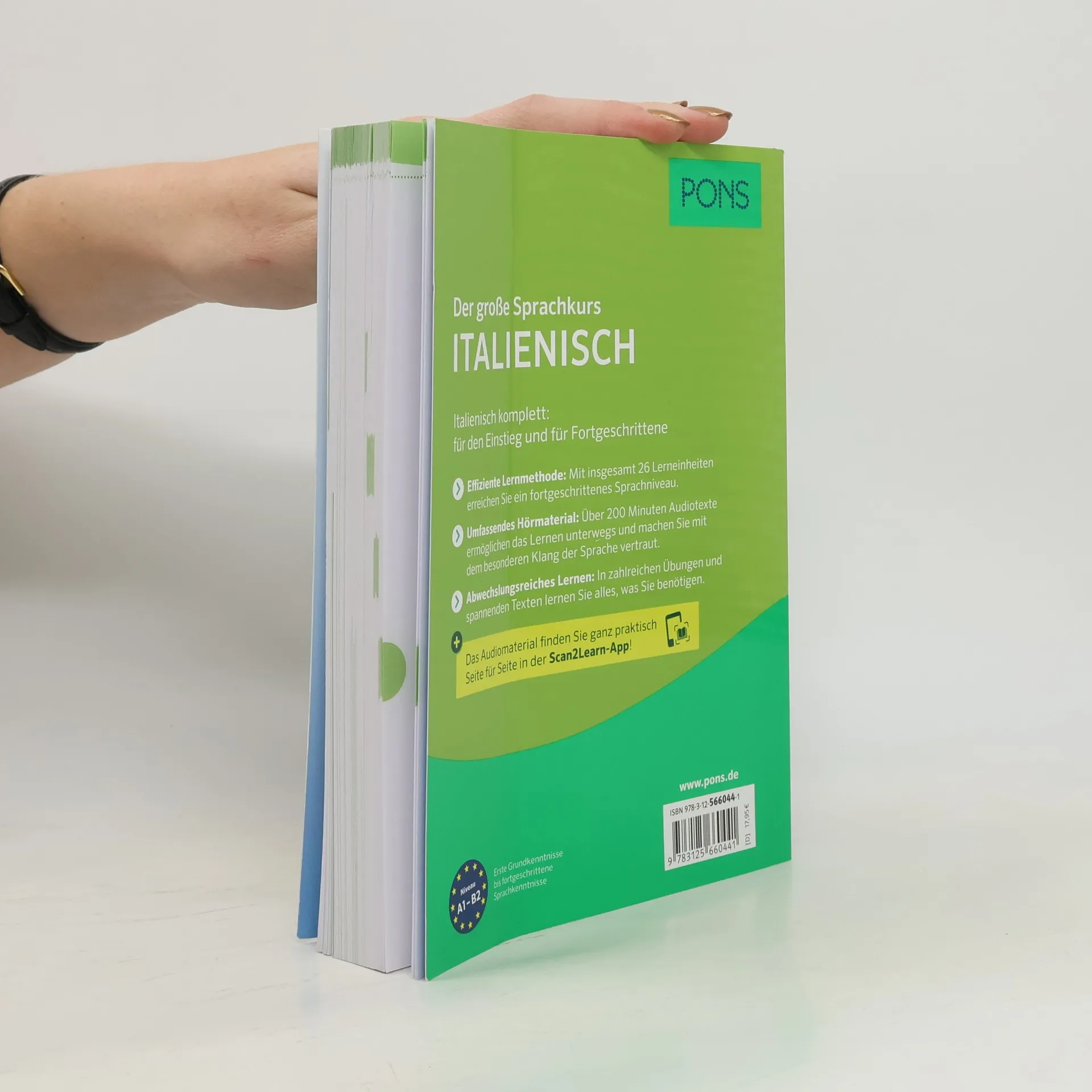 Italienisch komplett: für den Einstieg und für Fortgeschrittene Effiziente Lernmethode: Mit insgesamt 26 Lerneinheiten erreichen Sie ein fortgeschrittenes Sprachniveau. Umfassendes Hörmaterial: Über 200 Minuten Audiotexte ermöglichen das Lernen unterwegs und machen Sie mit dem besonderen Klang der Sprache vertraut. Abwechslungsreiches Lernen: In zahlreichen Übungen und spannenden Texten lernen Sie alles, was Sie benötigen. Das Audiomaterial finden Sie ganz praktisch Seite für Seite in der Scan2Learn-App! Niveau A1-B2: Erste Grundkenntnisse bis fortgeschrittene Sprachkenntnisse
