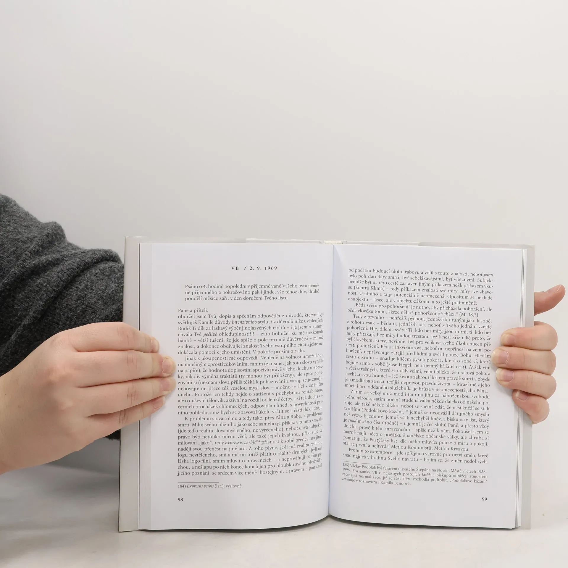 Kniha přináší edici dopisů dvou předních českých intelektuálních osobností a v osobním vztahu švagrů: Zdeňka Neubauera (1942–2016) a Václava Bendy (1946–1999). Dopisy byly psány v letech 1967–1969, kdy Zdeněk Neubauer pobýval na vědecké stáži v biochemické laboratoři v Neapoli. Tématem dopisů jsou jistě i politické události oněch let, především však intelektuální atmosféra doby, v níž oba myslitelé hledají svůj způsob propojení filosofického myšlení, katolické víry a umění. Diskutují proto o římskokatolické teologii po druhém vatikánském koncilu (Karl Rahner), ale také o myšlení radikálního nekatedrového filosofa, „českého Nietzscheho“ Ladislava Klímy, o kterém Benda píše diplomovou práci, nebo o duchovních principech ve výtvarném díle Josefa Šímy. Edici dopisů doplňují jednak vysvětlivky, komentáře a překlady cizojazyčných pasáží, jednak biografický rozhovor s Kamilou Bendovou, která je manželka Václava Bendy a sestrou Zdeňka Neubauera. V něm jsou vůbec poprvé vyloženy kontexty původu, výchovy a životní dráhy Zdeňka Neubauera až do doby vzniku těchto dopisů. K vydání připravil, komentoval, doslov napsal a rozhovor Kamilou Bendovou vedl Martin C. Putna.