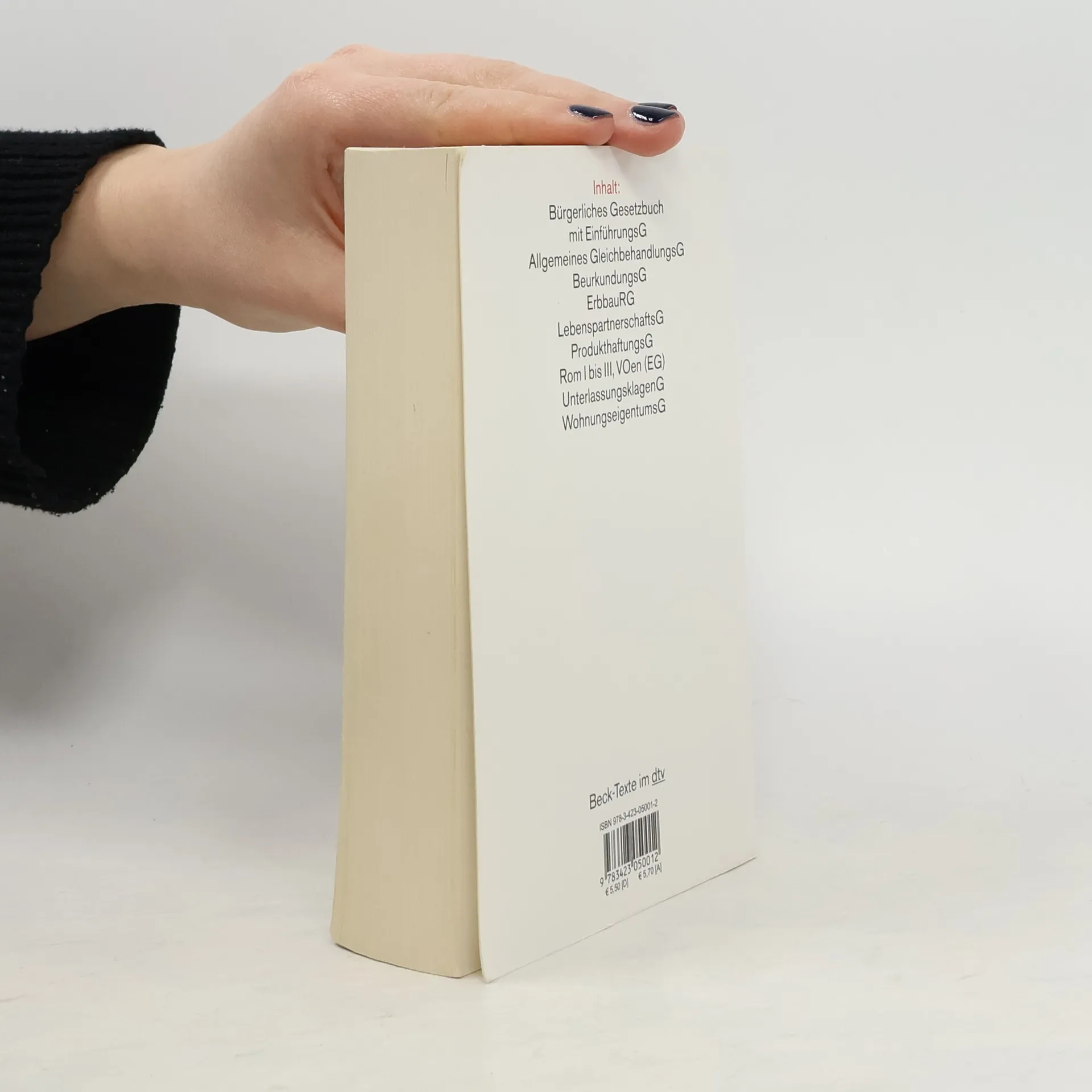 Bürgerliches Gesetzbuch mit EinführungsG, Allgemeines GleichbehandlungsG, BeurkundungsG, BGB-Informationspflichten-VO, ErbbaurechtsG, LebenspartnerschaftsG, ProdukthaftungsG, Rom I und II, VOen (EG), UnterlassungsklagenG, WohnungseigentumsG. Die Neuauflage enthält insbesondere textliche Bereinigungen und den neuen ab 1.1.2012 geltenden Basiszinssatz.