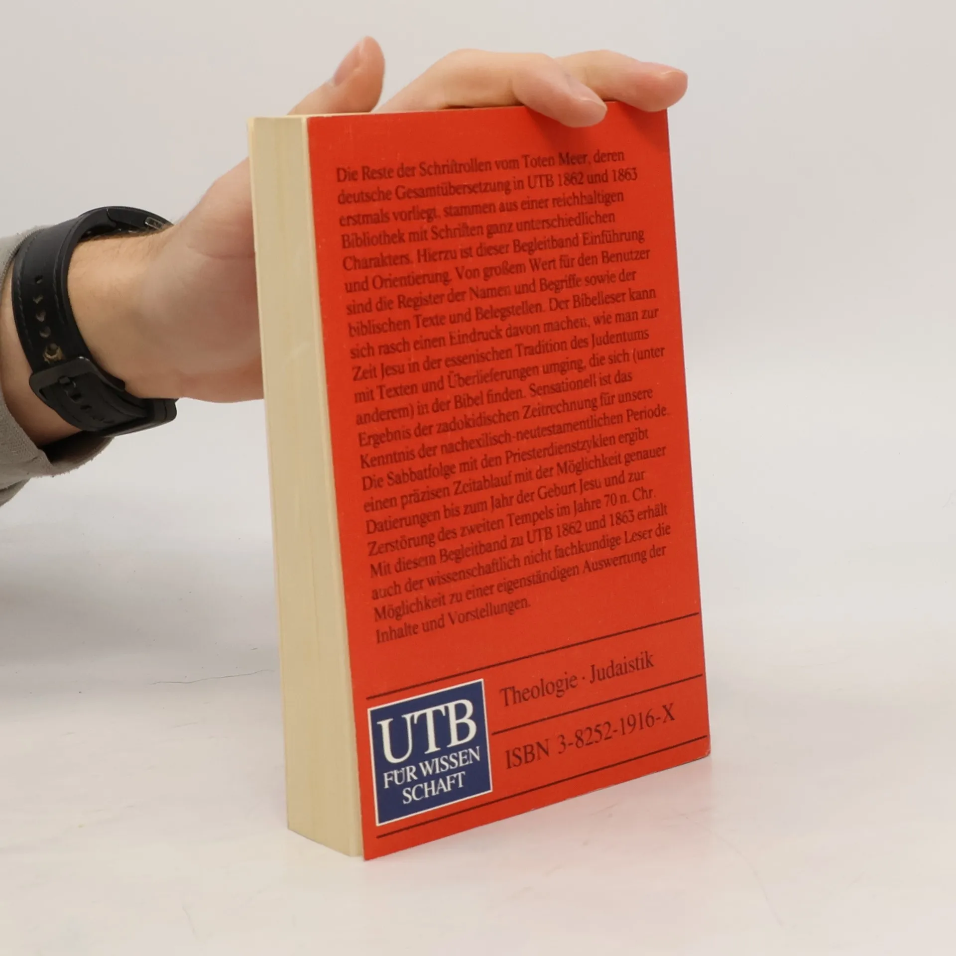 Hier wird in deutscher Sprache der Bestand und Inhalt aller Texte aus den Höhlen 1-11 präsentiert. Diese Orginaltexte aus der Zeit zwischen ca. 150 v. Chr. und 70 n. Chr. ermöglichen die Bildung eines eigenen Urteils über die Bedeutung und Inhalte dieser Reste von ursprünglich etwa 800 Schriftrollen.