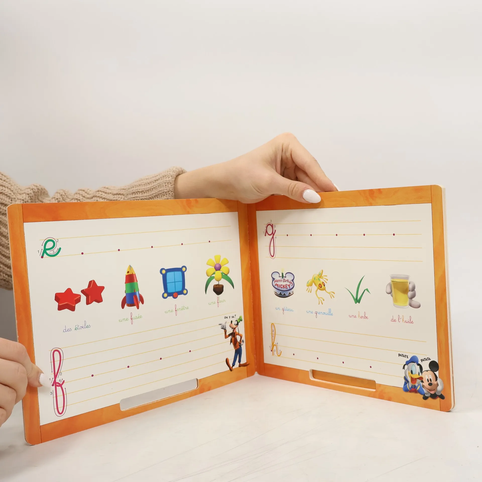 Un livre, aux couleurs de la Maison de Mickey, pour s'exercer à écrire les lettres majuscules. Grâce au feutre effaçable, votre enfant pourra repasser sur les modèles et tracer plusieurs fois chaque lettre.