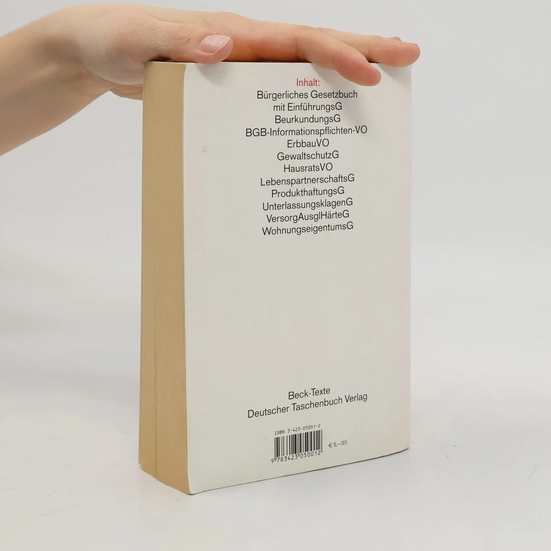 Bürgerliches Gesetzbuch mit EinführungsG, Allgemeines GleichbehandlungsG, BeurkundungsG, BGB-Informationspflichten-VO, ErbbaurechtsG, LebenspartnerschaftsG, ProdukthaftungsG, Rom I und II, VOen (EG), UnterlassungsklagenG, WohnungseigentumsG. Die Neuauflage enthält insbesondere textliche Bereinigungen und den neuen ab 1.1.2012 geltenden Basiszinssatz.