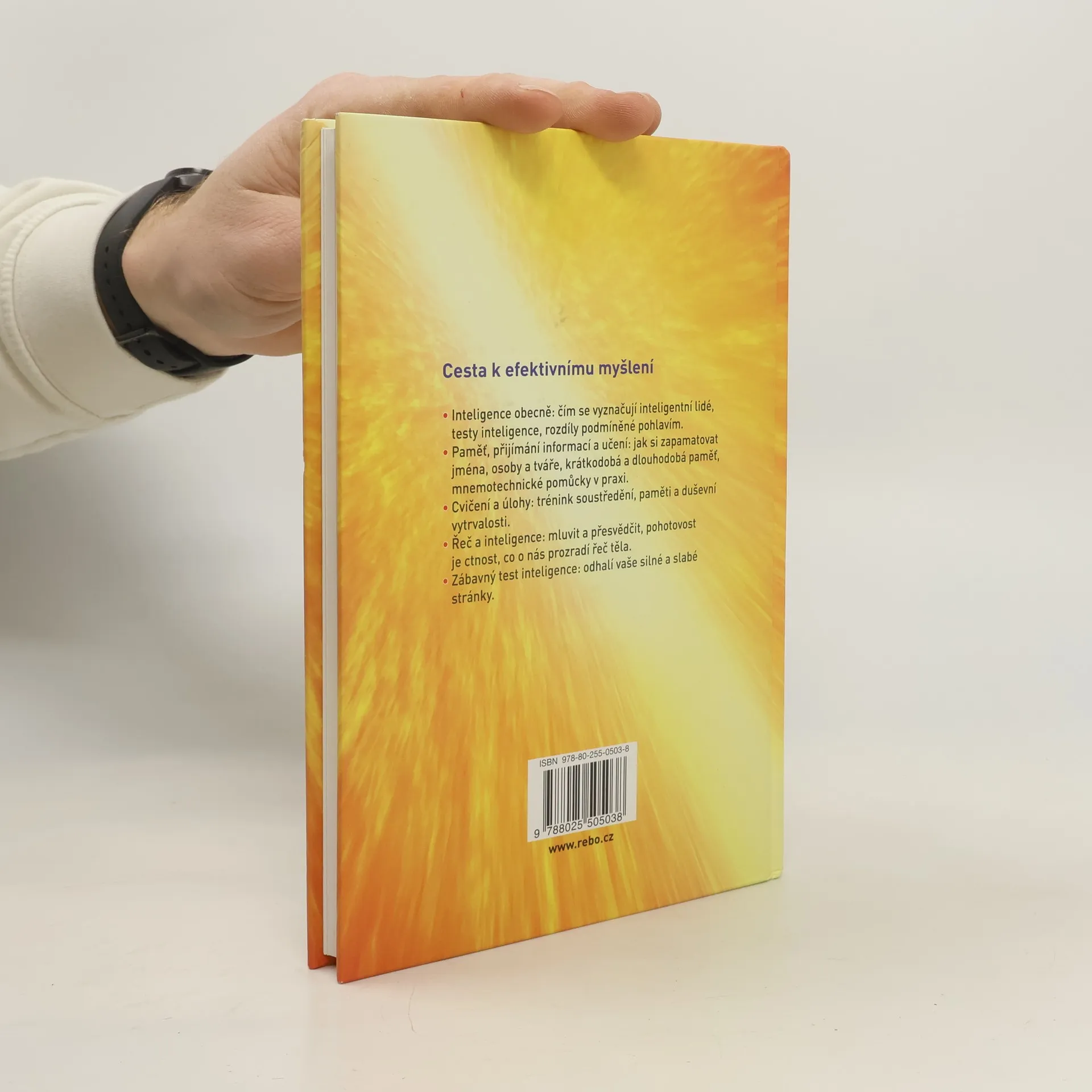 Tato kniha je ideálním průvodcem na cestě k efektivnímu myšlení. Čtenář se zde dozví mnoho užitečných informací o inteligenci, paměti, přijímání informací a učení, soustředění, ale i o mluvené řeči a řeči těla. Kniha obsahuje řadu praktických tipů, jak cvičit mozek, jak pohotově zpracovávat informace, jak se lépe soustředit apod., ale také nejrůznější testy, mnemotechnické pomůcky a další cvičení k trénování paměti a duševní vytrvalosti. Vyšlo již dříve pod názvem Efektivní myšlení. - výklad o lidském myšlení a rady pro procvičování mozku - všeobecný test inteligence na začátku knihy - užitečné tipy, návody, příklady, cvičení a úlohy, včetně správných řešení v každé kapitole - volné listy určené pro poznámky čtenáře - obsáhlý rejstřík