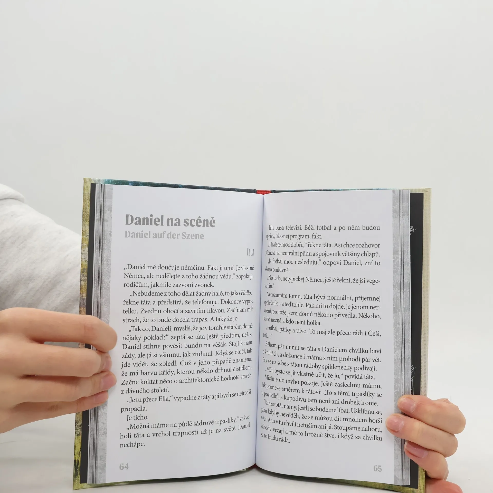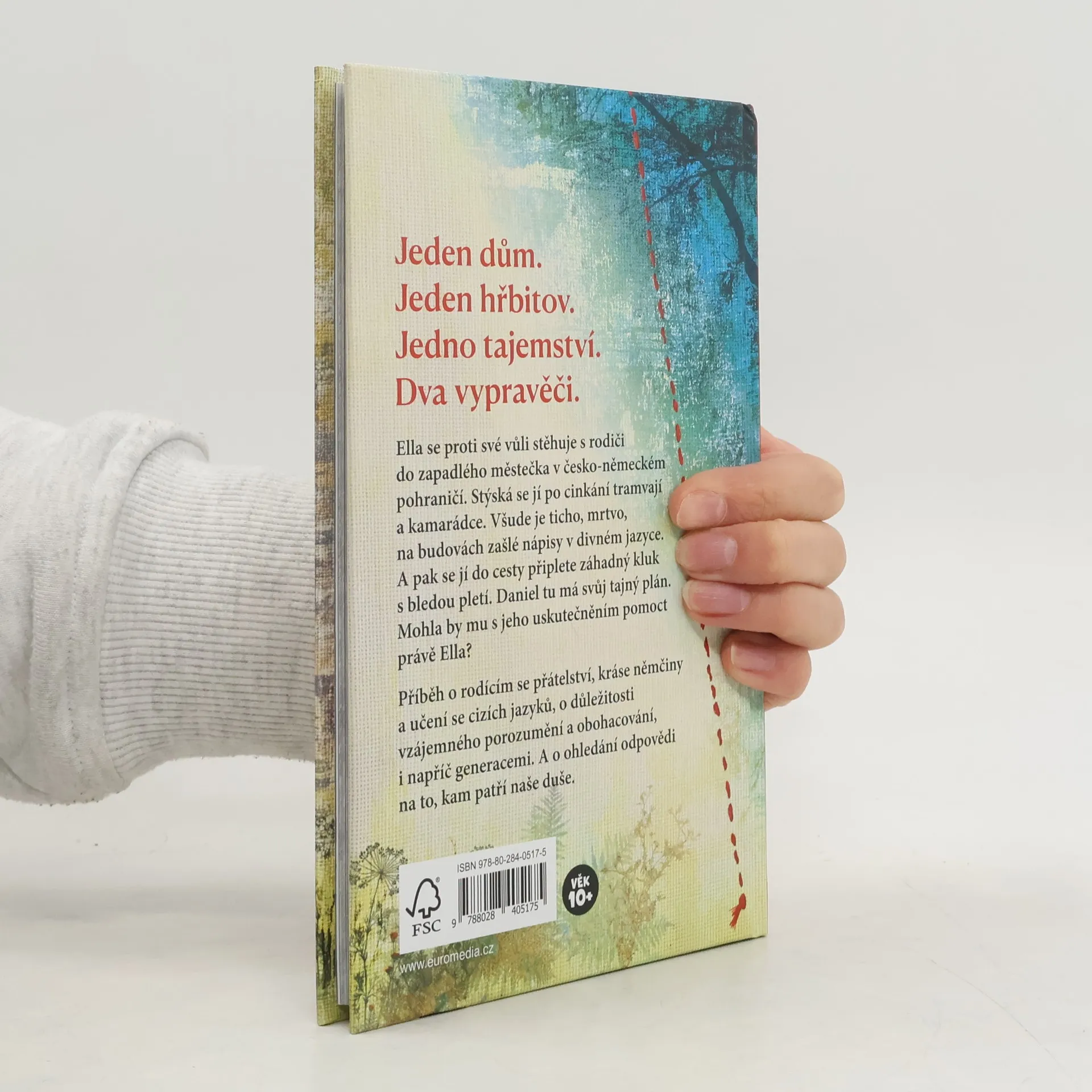 Jeden dům. Jeden hřbitov. Jedno tajemství. Dva vypravěči. Ella se proti své vůli stěhuje s rodiči do zapadlého městečka v česko-německém pohraničí. Stýská se jí po cinkání tramvají a kamarádce. Všude je ticho, mrtvo, na budovách zašlé nápisy v divném jazyce. A pak se jí do cesty připlete záhadný kluk s bledou pletí. Daniel tu má svůj tajný plán. Mohla by mu s jeho uskutečněním pomoct právě Ella? Příběh o rodícím se přátelství, kráse němčiny a učení se cizích jazyků, o důležitosti vzájemného porozumění a obohacování, i napříč generacemi. A o hledání odpovědi na to, kam patří naše duše.