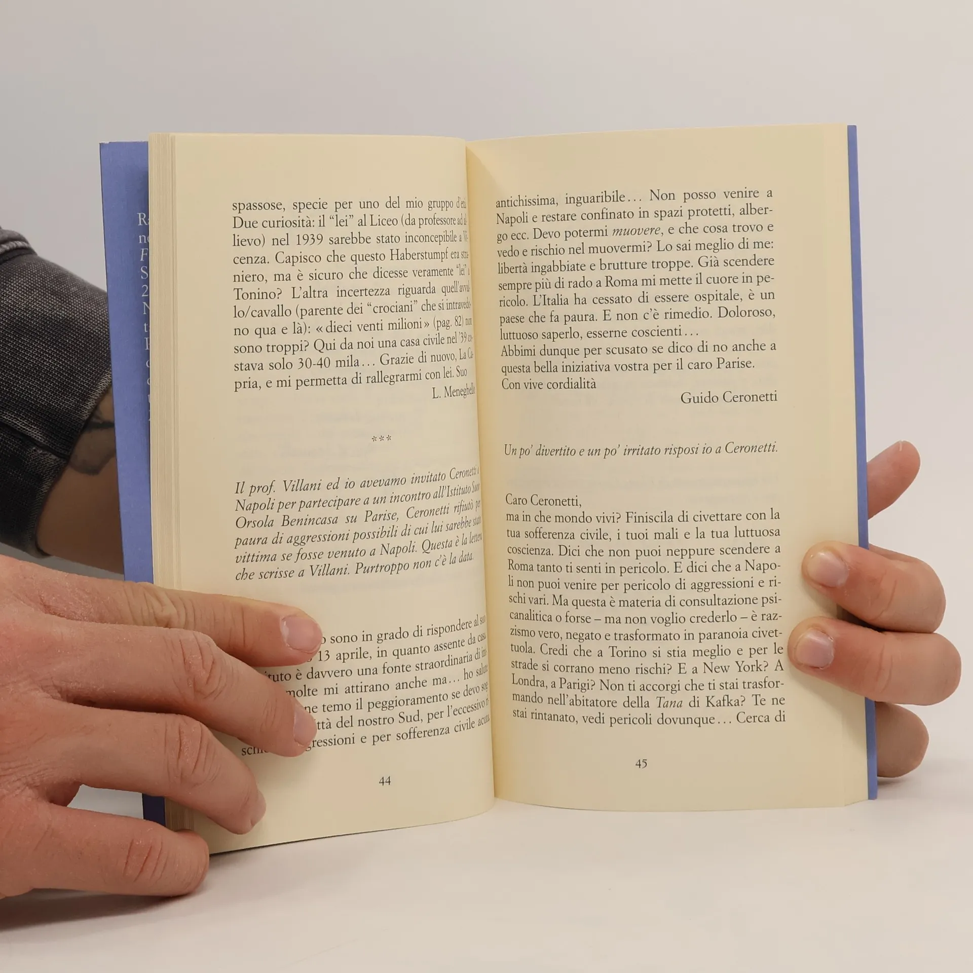 "La sera di Capodanno del 2009 mi trovavo nella casa di campagna di Raffaele e Ilaria ad aspettare la mezzanotte con alcuni nostri amici. Si chiacchierava del più e del meno finché si parlò dell'amicizia, del suo valore, del fatto che non si scrivono più lettere e ci si accontenta di telefonate. Chiesi a Raffaele se lui aveva nel cassetto lettere di amici. "Credo di averle perse tutte", mi disse. "Anche quelle che ti ho mandato io?!" esclamai indignato. Lui sorrise. Un'ora più tardi si corresse: "Qualcuna l'avrò conservata, ma non ricordo dove". Infine, allo scoccare della mezzanotte: "Ora che mi ci fai pensare le cercherò". Le ha cercate, le ha trovate. Gli ho subito proposto di pubblicarle nel notes magico. Ci ha pensato un po' e mi ha detto: "Ho qualche dubbio, ma se si sono fatte trovare è perché forse vogliono uscire alla luce". Ed eccole qui." (Umberto Silva)