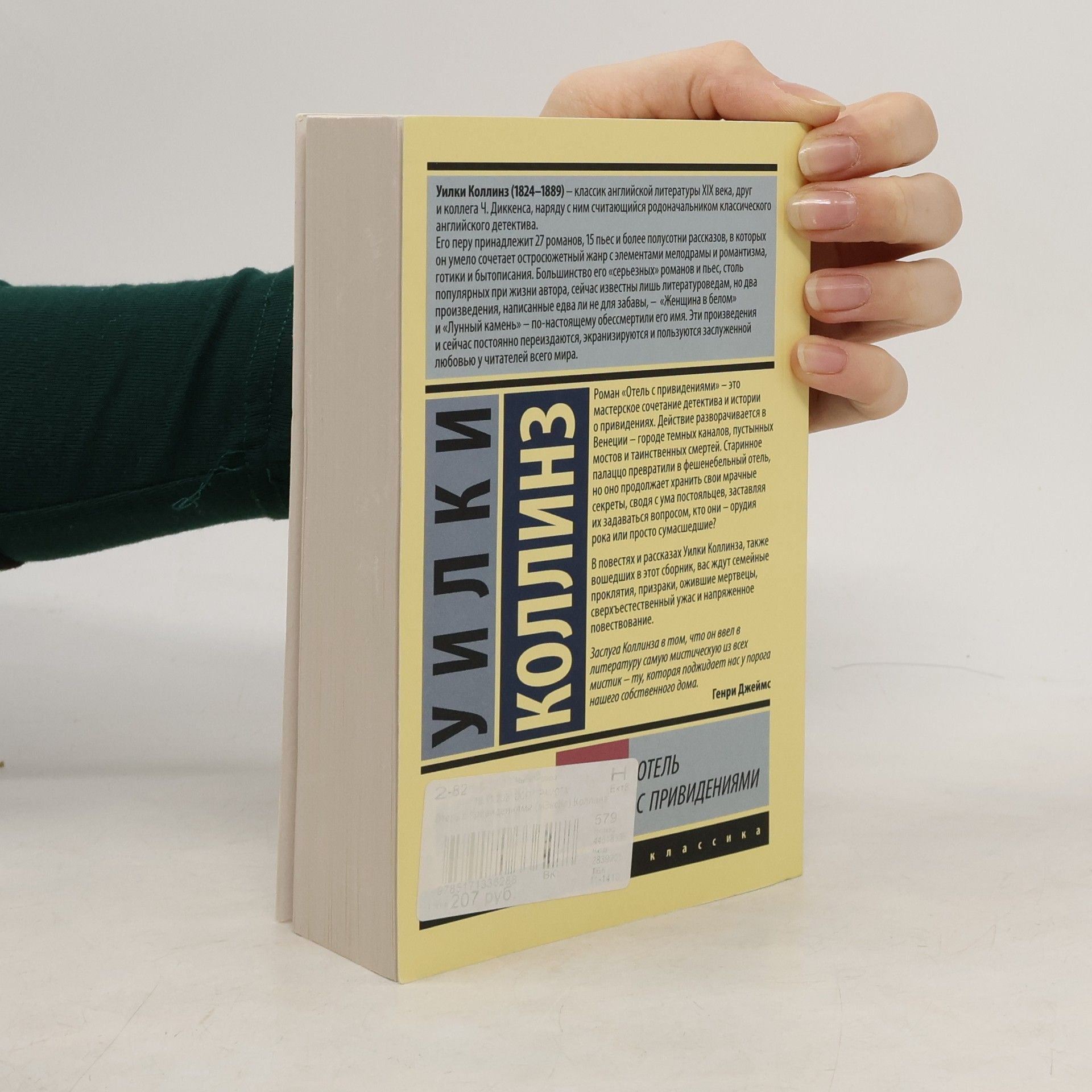 Roman "Otel s prividenijami" – eto masterskoe sochetanie detektiva i istorii o prividenijakh. Dejstvie razvorachivaetsja v Venetsii – gorode temnykh kanalov, pustynnykh mostov i tainstvennykh smertej. Starinnoe palatstso prevratili v feshenebelnyj otel, no on prodolzhaet khranit svoi mrachnye sekrety, svodja s uma postojaltsev, zastavljaja ikh zadavatsja voprosom, kto oni – orudija roka ili prosto sumasshedshie? V povestjakh i rasskazakh Uilki Kollinza, takzhe voshedshikh v etot sbornik, vas zhdut semejnye prokljatija, prizraki, ozhivshie mertvetsy, sverkhestestvennyj uzhas i naprjazhennoe povestvovanie.
