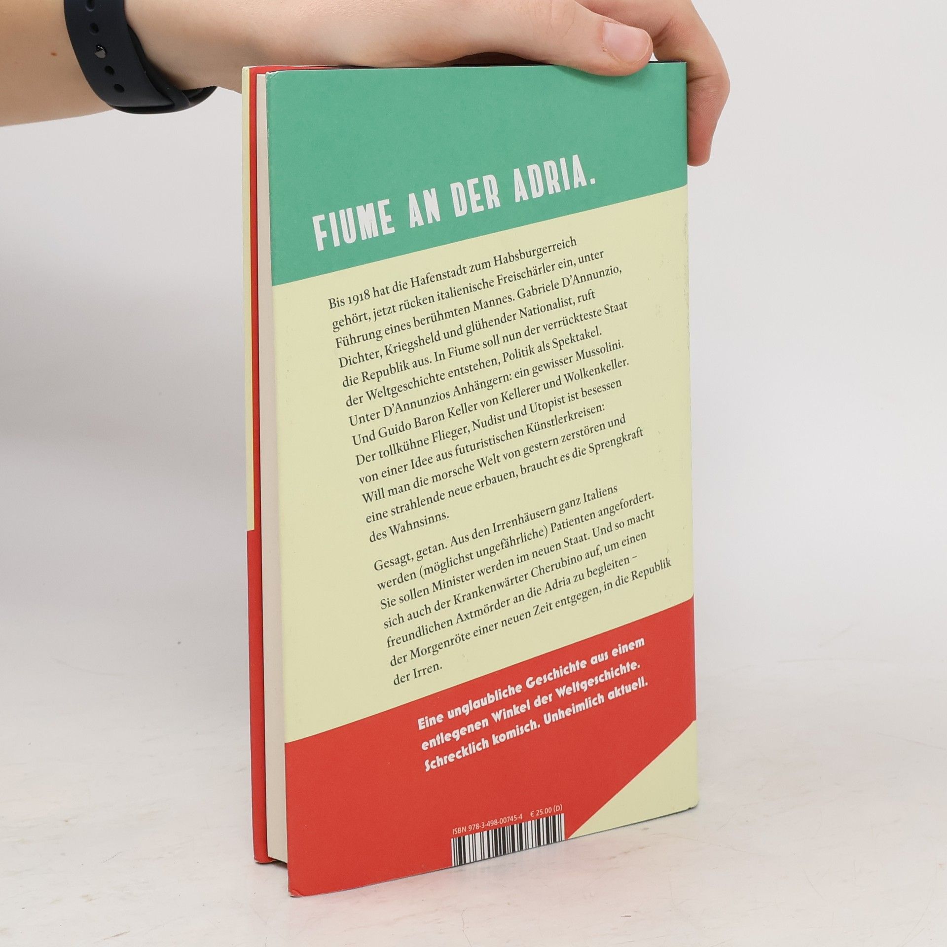 Eine unglaubliche, aber wahre Episode aus dem letzten Jahrhundert: spektakulär komisch, erschreckend zeitgemäß. Fiume an der Adria. Bis 1918 hat die Hafenstadt zum Habsburgerreich gehört, jetzt rücken italienische Freischärler ein, unter Führung eines berühmten Mannes. Gabriele D’Annunzio, Dichter, Kriegsheld und glühender Nationalist, ruft die Republik aus. In Fiume soll nun der verrückteste Staat der Weltgeschichte entstehen, Politik als Spektakel. Unter D’Annunzios Anhängern: ein gewisser Mussolini. Und Guido Baron Keller von Kellerer und Wolkenkeller. Der tollkühne Flieger, Nudist und Utopist ist besessen von einer Idee aus futuristischen Künstlerkreisen: Will man die morsche Welt von gestern zerstören und eine strahlende, neue erbauen, braucht es die Sprengkraft des Wahnsinns. Gesagt, getan. Aus den Irrenhäusern ganz Italiens werden (möglichst ungefährliche) Patienten angefordert. Sie sollen Minister werden im neuen Staat. Und so macht sich auch der Krankenwärter Cherubino auf, um einen freundlichen Axtmörder an die Adria zu begleiten – der Morgenröte einer neuen Zeit entgegen, in die Republik der Irren.