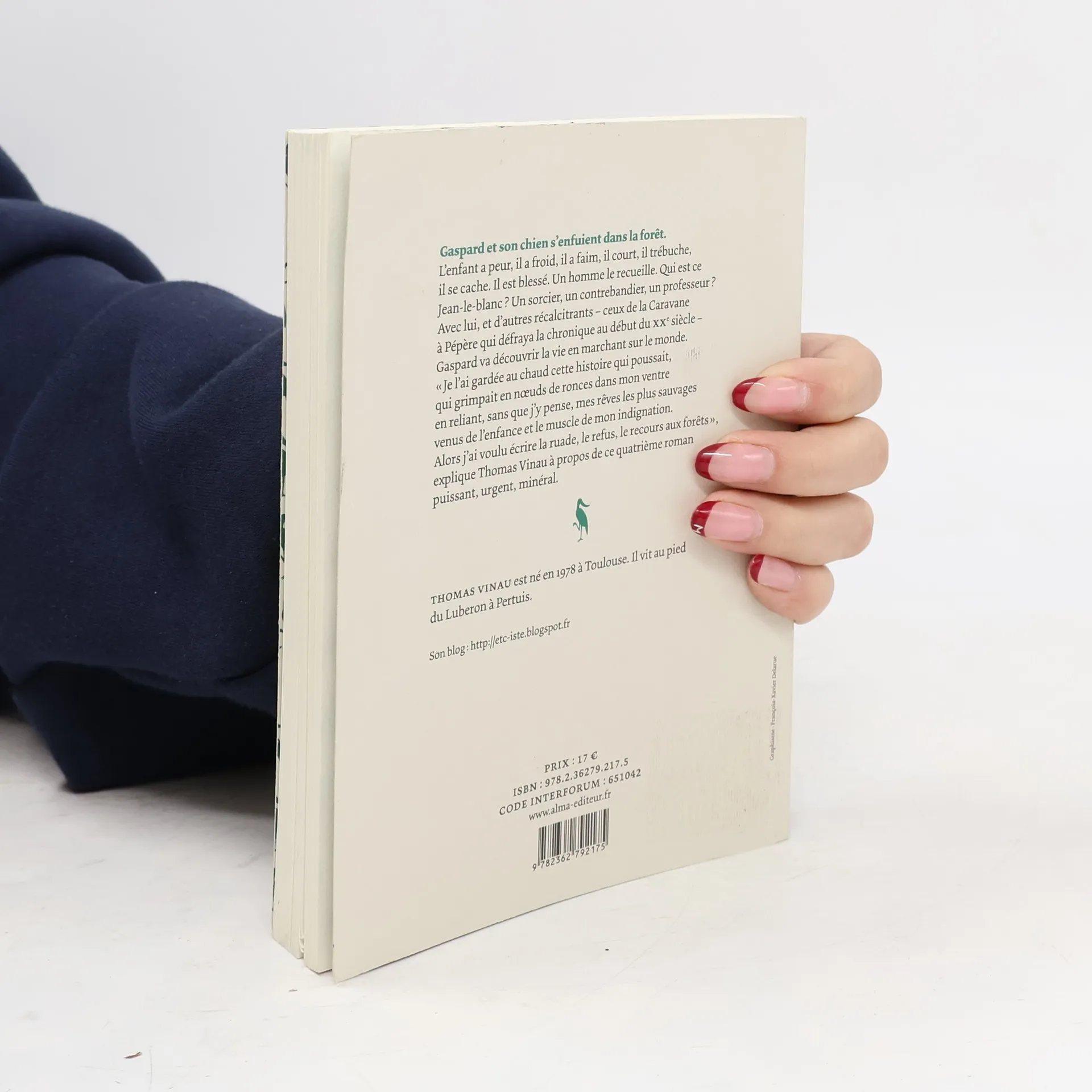 Gaspard et son chien s’enfuient dans la forêt. L’enfant a peur, il a froid, il a faim, il court, il trébuche, il se cache. Il est blessé. Un homme le recueille. Qui est ce Jean-le-blanc ? Un sorcier, un contrebandier, un professeur ? Avec lui, et d’autres récalcitrants – ceux de la Caravane à Pépère qui défraya la chronique au début du XXe siècle – Gaspard va découvrir la vie en marchant sur le monde. « Je l’ai gardée au chaud cette histoire qui poussait, qui grimpait en nœuds de ronces dans mon ventre en reliant, sans que j’y pense, mes rêves les plus sauvages venus de l’enfance et le muscle de mon indignation. Alors j’ai voulu écrire la ruade, le refus, le recours aux forêts », explique Thomas Vinau à propos de ce quatrième roman puissant, urgent, minéral. Thomas Vinau est né en 1978 à Toulouse. Il vit au pied du Luberon à Pertuis.