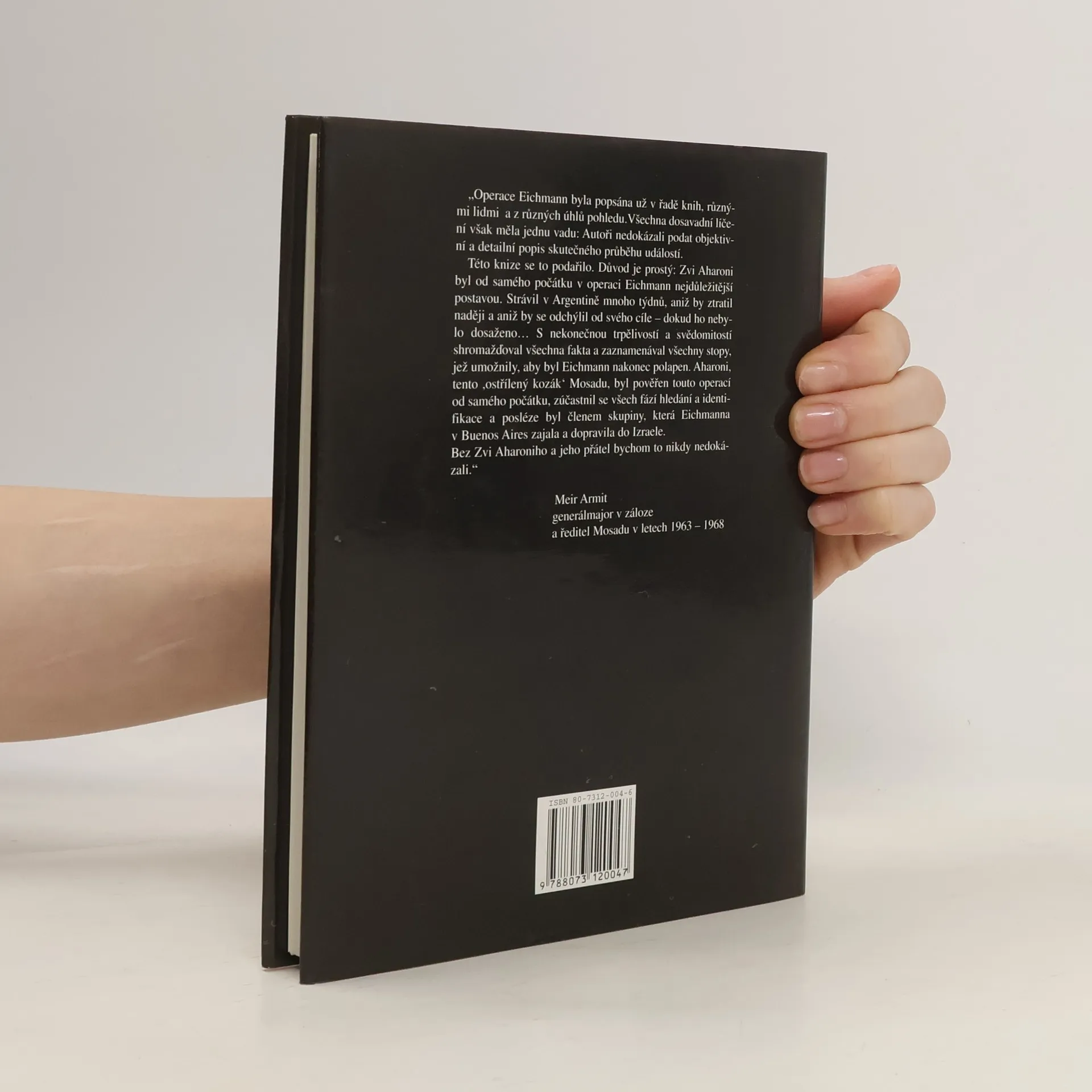 Autoři podávají objektivní a detailní popis skutečného průběhu událostí operace Eichmann a to hlavně z důvodu, že Zvi Aharoni byl od samého počátku v operaci Eichmann nejdůležitější postavou. Strávil v Argentině mnoho týdnů, aniž by ztratil naději a aniž by se odchýlil od svého cíle - dokud ho nebylo dosaženo...S nekonečnou trpělivostí a svědomitostí shromažďoval všechna fakta a zaznamenával všechny stopy, jež umožnily, aby byl Eichmann nakonec polapen. Aharoni, tento "ostřílený kozák" Mosadu, byl pověřen touto operací od samého počátku, zúčastnil se všech fází hledání a identifikace a posléze byl členem skupiny, která Eichmanna v Buenos Aires zajala a dopravila do Izraele.