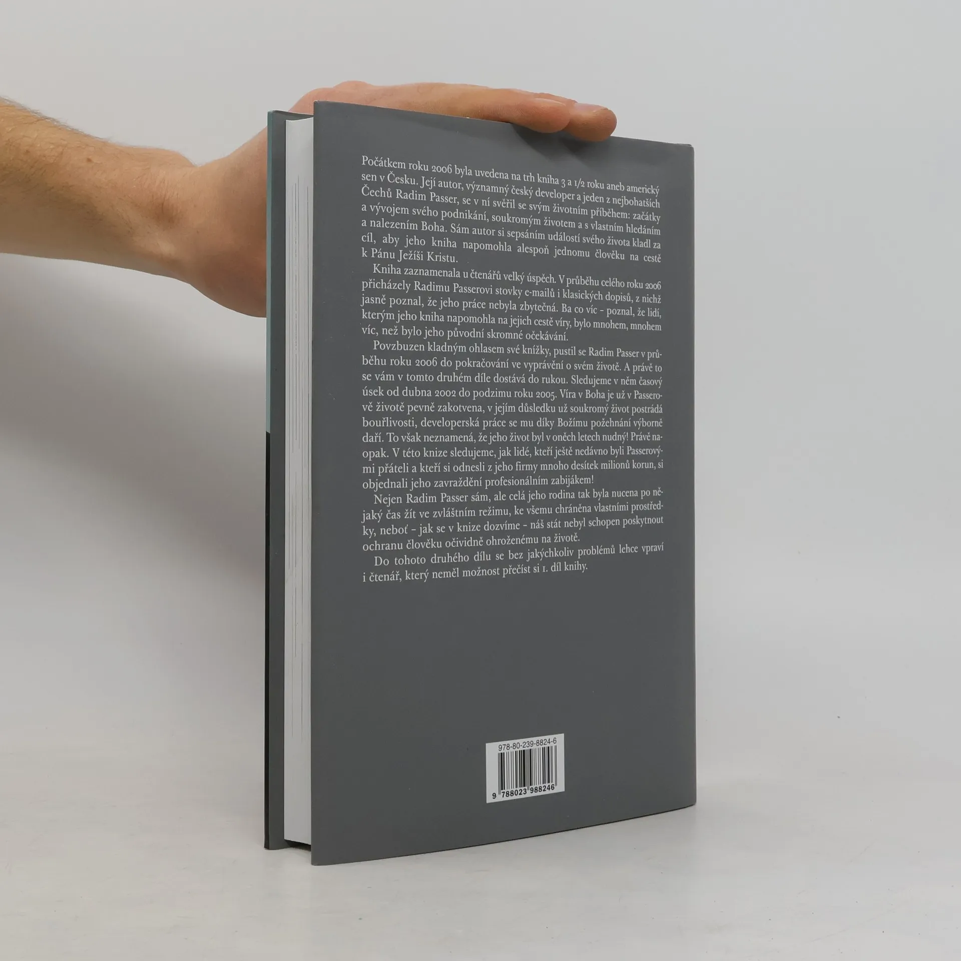 Na začátku roku 2006 byla vydána kniha 3 a 1/2 roku aneb americký sen v Česku, jejímž autorem je Radim Passer, významný český developer a jeden z nejbohatších Čechů. V ní se podělil o svůj životní příběh, počátky podnikání, soukromý život a hledání Boha. Autor doufal, že jeho kniha pomůže alespoň jednomu člověku na cestě k Pánu Ježíši Kristu. Kniha zaznamenala velký úspěch a během roku 2006 obdržel Passer stovky e-mailů a dopisů, které potvrdily, že jeho práce měla smysl a pomohla mnoha lidem na jejich cestě víry. Povzbuzena pozitivními reakcemi, se Passer pustil do pokračování vyprávění o svém životě, které se zaměřuje na období od dubna 2002 do podzimu 2005. V této fázi je víra v Boha pevně zakotvena v jeho životě, což pozitivně ovlivňuje jeho soukromí i profesní úspěchy. Avšak jeho život nebyl nudný; v knize se objevuje dramatická situace, kdy bývalí přátelé, kteří z jeho firmy získali značné částky, si objednali jeho vraždu. Passer a jeho rodina byli nuceni žít v nebezpečí a chránit se vlastními prostředky, protože stát nebyl schopen poskytnout potřebnou ochranu.