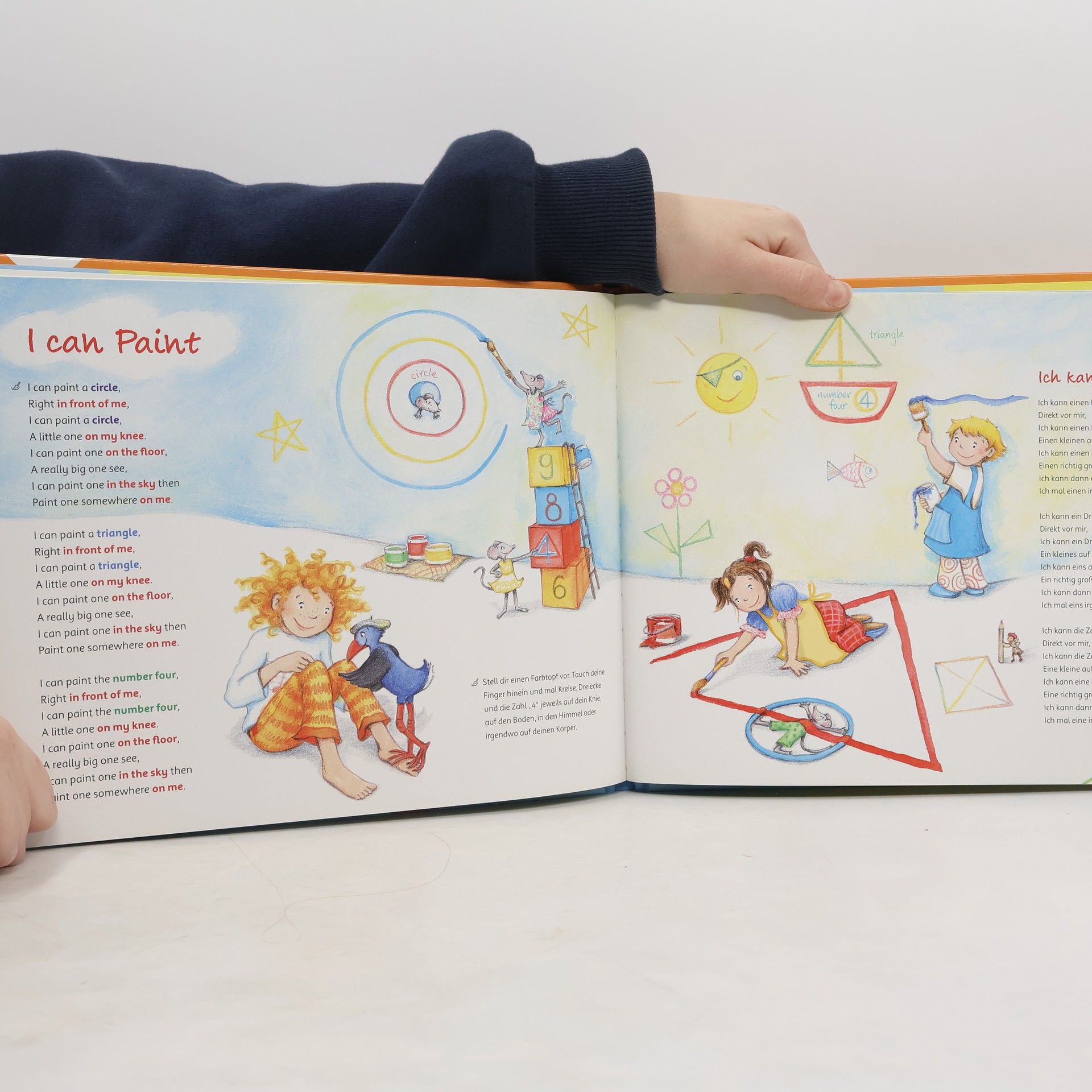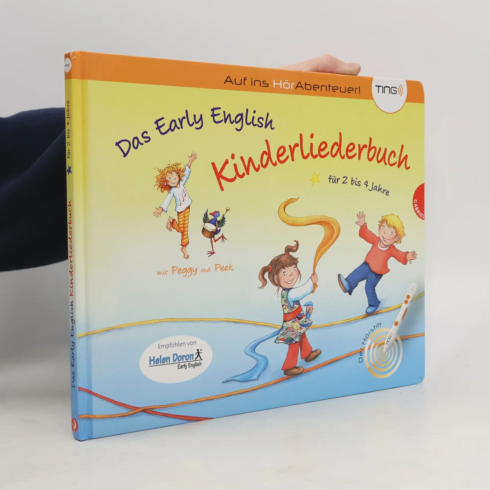 Mit der Ting-Ausgabe des "Early English Kinderliederbuchs" können schon Kinder ab zwei Jahren interaktiv erste englische Wörter entdecken. Mit dem Ting-Hörstift wird das Buch lebendig. Die Hauptfiguren Peggy und Peek erklären ihnen erste englische Wörter: Sie malen Dreiecke und Quadrate, tanzen, lassen Seifenblasen schweben, spielen mit Bällen, den Tieren im Garten, mit Handpuppen und Stoffhasen.