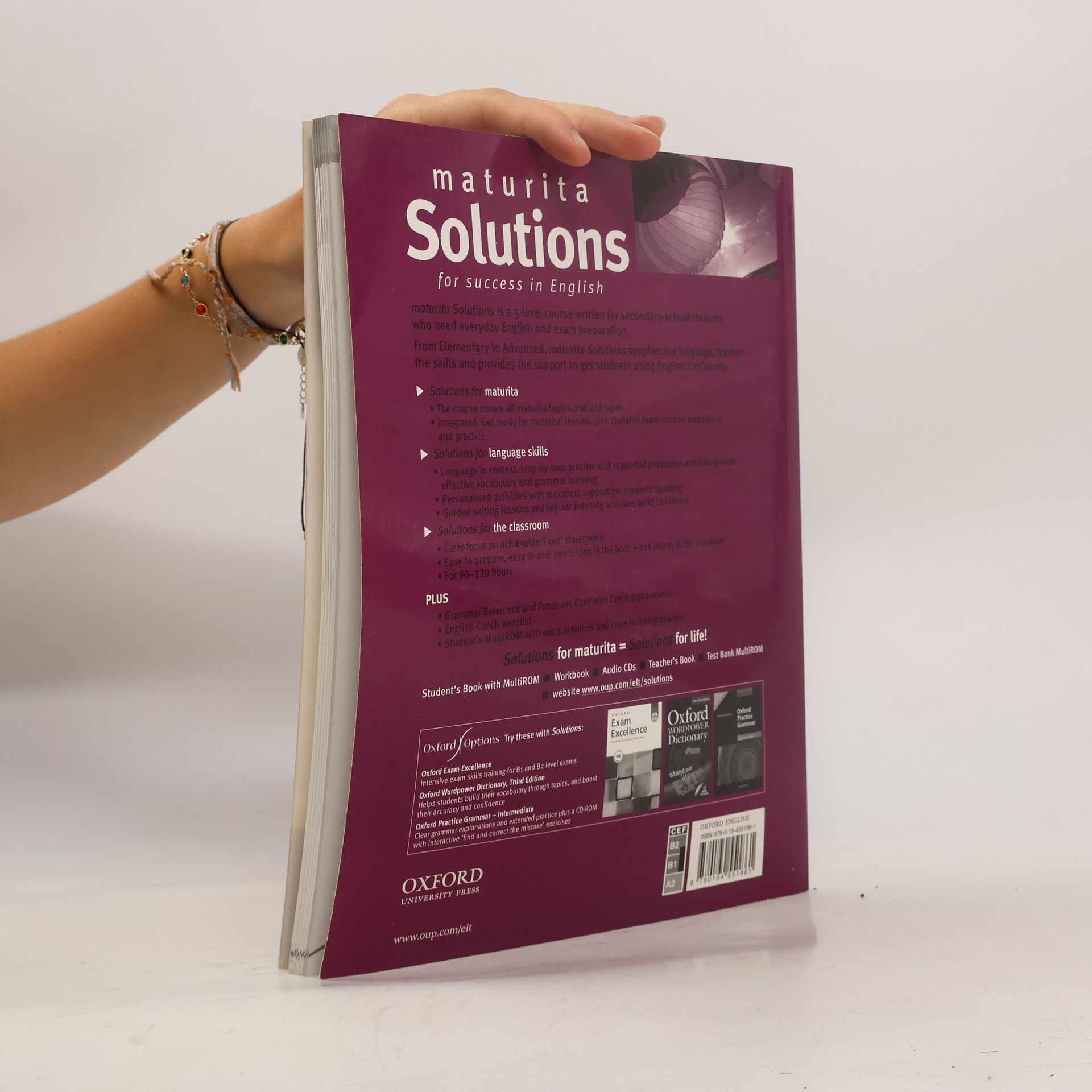 Popis: - zcela nový pětidílný kurz určený pro studenty českých středních škol, kteří se připravují na NOVOU MATURITU z anglického jazyka - přehledná, jednoduchá stavba lekce: jedna stránka = jedna 45minutová hodina probírá a procvičuje maturitní témata - GET READY FOR MATURITA - připravuje na všechny části a na obě úrovně NOVÉ MATURITY - v metodické příručce je mnoho kopírovatelných doplňkových materiálů a nápadů pro mixed-ability classes Description: A five-level general English course for 14-19 year-olds, who are also preparing for the school-leaving exam. Overview The clear structure and step-by-step approach to communication provides supported language and skills training to get students speaking confidently. Key features * Every lesson has an outcome: the "I can" objective in each lesson gives students an immediate sense of achievement. * Clear lessons mean Solutions is quick to prepare and easy to use. * All school-leaving exam topics and task-types are covered in Solut