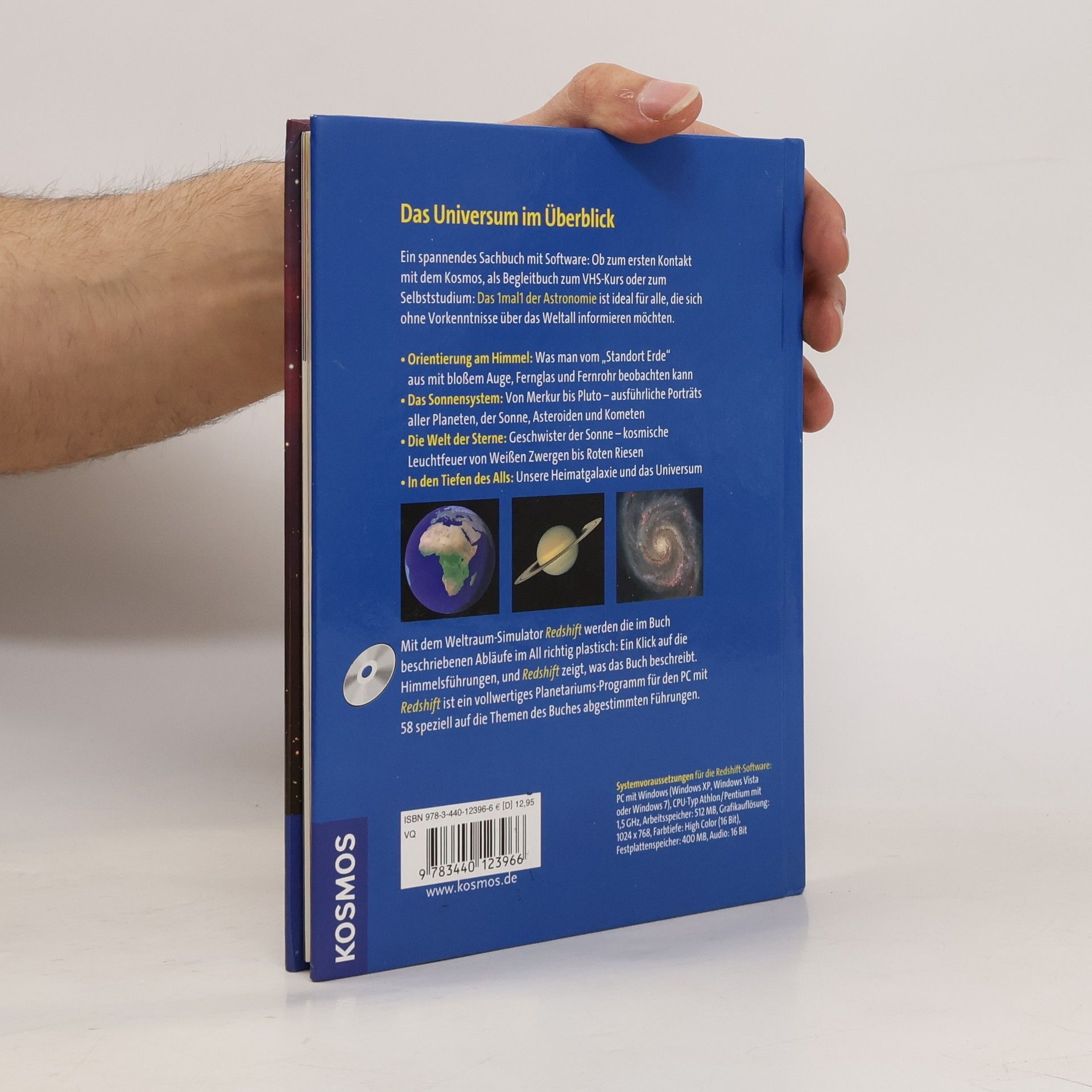 Das Universum im Überblick: Dieser Grundkurs zu Astronomie, Himmelsbeobachtung und Kosmologie bietet alle wichtigen Informationen über das Weltall. Orientierung am Himmel: Sternbilder, Teleskope und Himmelsschauspiele. Das Sonnensystem: Von Merkur bis Pluto - unsere Nachbarn im All in ausführlichen Portraits. Die Welt der Sterne: Warum Sterne leuchten und wie man ihre Eigenschaften bestimmt. In den Tiefen des Alls: Sternhaufen, unsere Milchstraße und weit entfernte Galaxien Das Besondere an diesem Buch: Es enthält die Software „Redshift 7 Launcher“, das PC-Planetarium. Zu jedem Thema im Buch finden Sie auf der CD zusätzlich spezielle Startdateien, die Ihnen die Buchinhalte auf dem PC visualisieren. So wird das Universum zum Erlebnis!