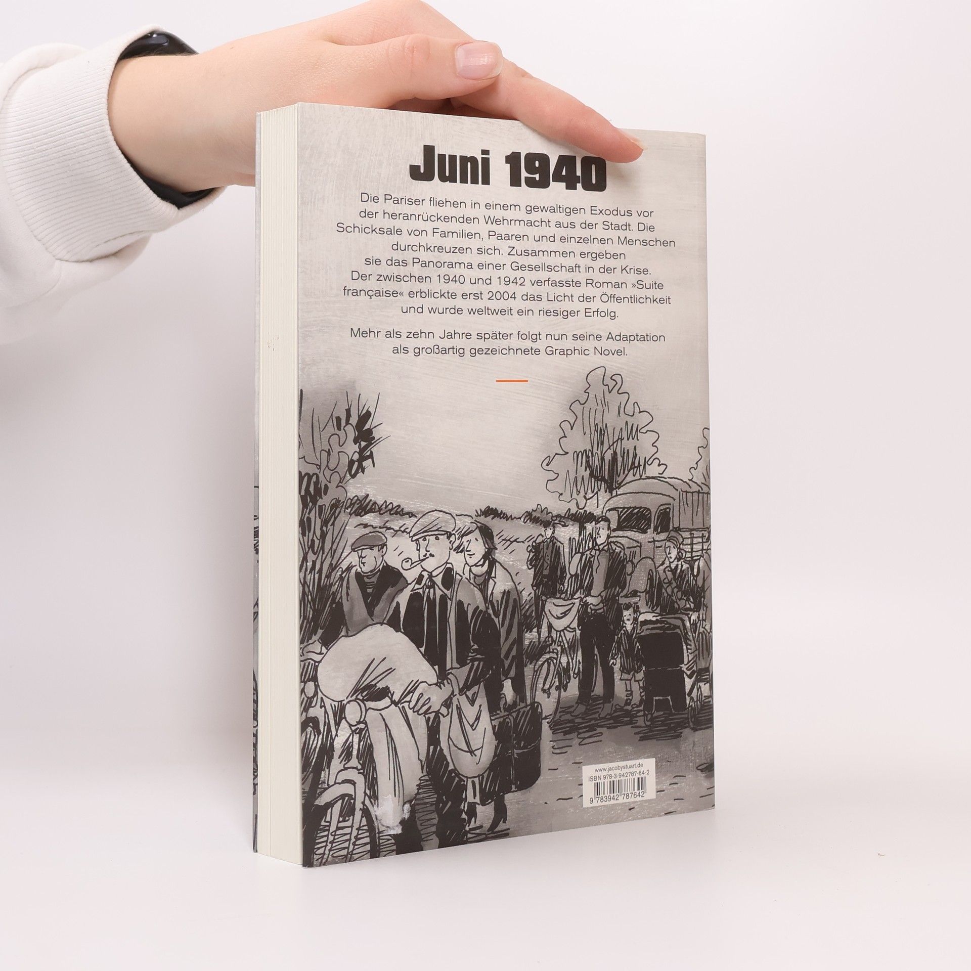 Über 60 Jahre lag der Roman Suite française, das Vermächtnis der einstigen französischen Starautorin Irène Némirovsky, unentdeckt in einem Koffer – bis ihre Tochter Denise Epstein dieses Sittengemälde aus der Zeit der deutschen Besatzung in Frankreich während des Zweiten Weltkriegs zufällig entdeckte. Es wurde zu einem Sensationserfolg. Nun hat der französische Illustrator Emmanuel Moynot es als eindringliche Graphic Novel gestaltet. Dieser erste Teil der Suite française, »Sturm im Juni«, schildert die Zeit vom Sommer 1940 bis zum Frühjahr 1941. Er berichtet von der Besetzung von Paris und der Flucht der Stadtbevölkerung anhand von drei Familien. Mit wachem Blick hat Irène Némirovsky ihre Mitmenschen beobachtet: ihre Hoffnungen und Illusionen, ihre Niedertracht und Selbstgefälligkeit, aber auch ihre Lebenslust und große Sehnsucht nach Frieden. Le Figaro schreibt: »Trotz der durch die Form der Bildergeschichte unvermeidlichen Vereinfachung gelingt es Emmanuel Moynot, auch dank der sehr treffgenauen Dialoge, weder die Züge seiner Figuren zu vergröbern noch den Porträts ihre Schärfe zu nehmen. Eine großartige Graphic Novel!«