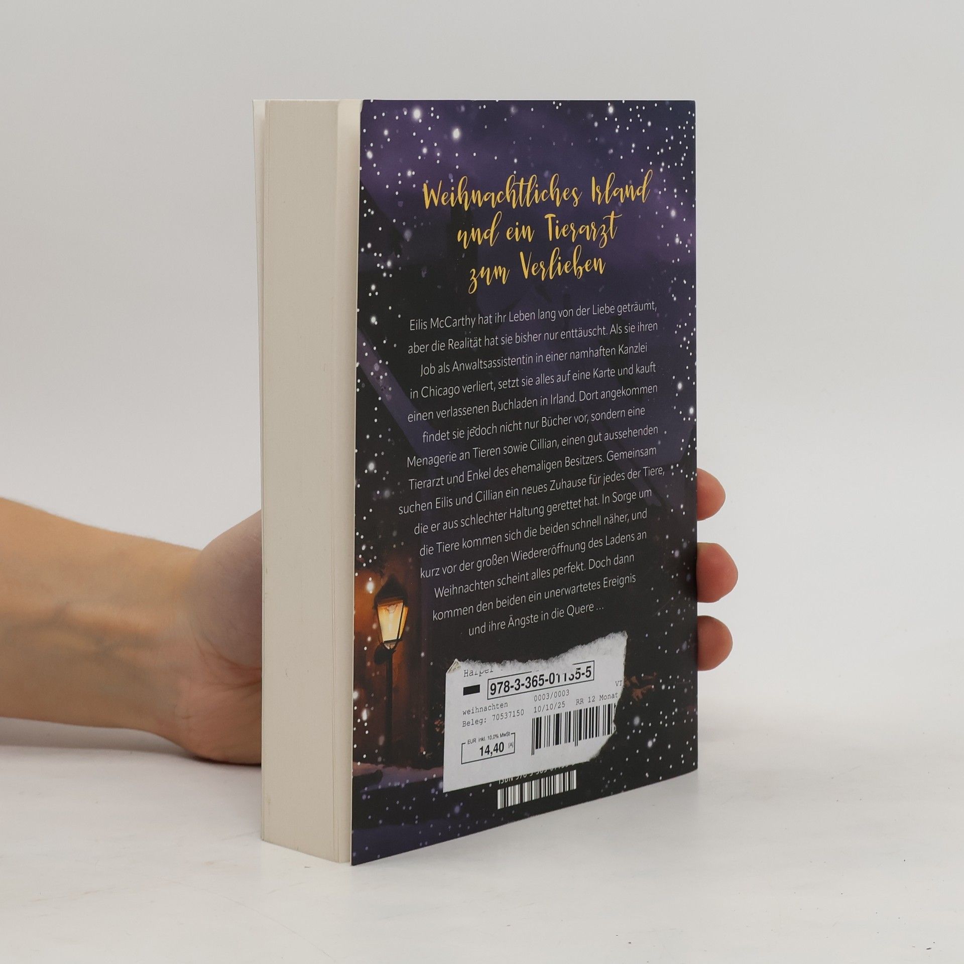 Weihnachtliches Irland und ein Tierarzt zum Verlieben Eilis McCarthy hat ihr Leben lang von der Liebe geträumt, aber die Realität hat sie bisher nur enttäuscht. Als sie ihren Job als Anwaltsassistentin in einer namhaften Kanzlei in Chicago verliert, setzt sie alles auf eine Karte und kauft einen verlassenen Buchladen in Irland. Dort angekommen findet sie jedoch nicht nur Bücher vor, sondern eine Menagerie an Tieren und Cillian, einen gutaussehenden Tierarzt und Enkel des ehemaligen Besitzers. Gemeinsam suchen Eilis und Cillian ein neues Zuhause für jedes der Tiere, die er aus schlechter Haltung gerettet hat. Kurz vor der großen Wiedereröffnung des Ladens an Weihnachten scheint alles perfekt. Doch dann kommen ihnen ihre Ängste in die Quere …