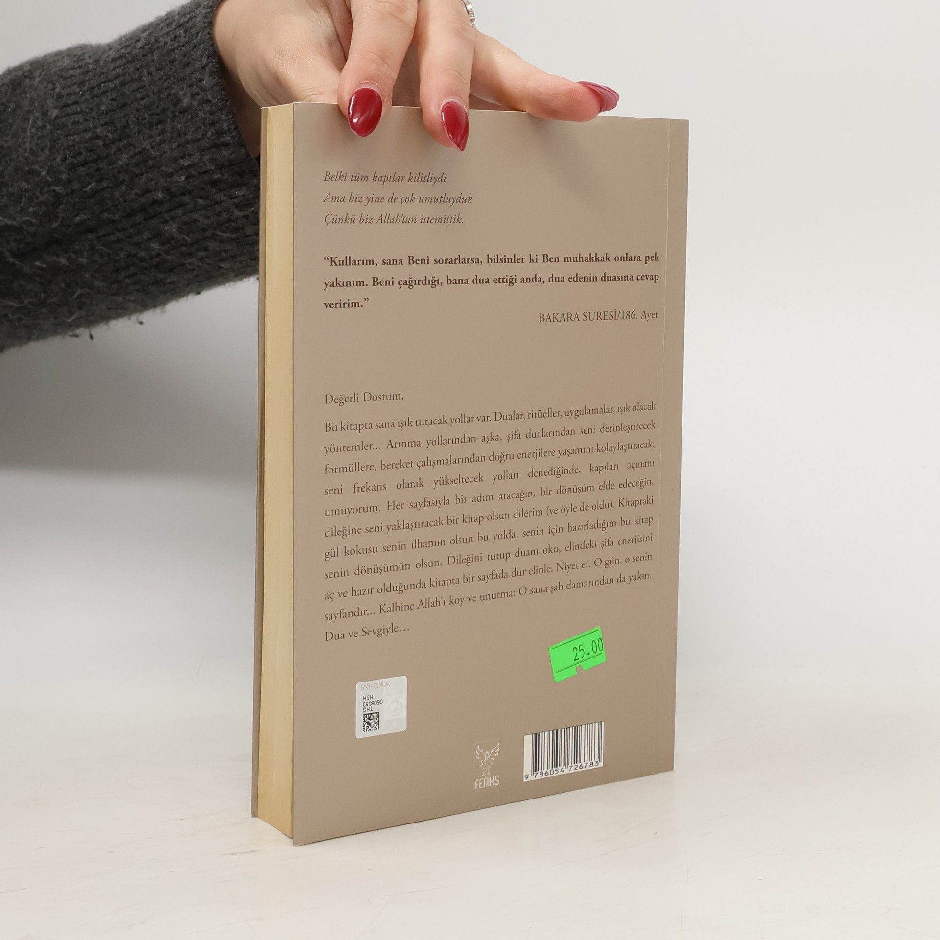 Allah’ın adıyla, Allah aşkına yaptığın her şey sana misliyle geri döner.Senin çok istediğin bir şey var vebunu yaşamına çekmen için şimdibu boyutun ötesini keşfetmen gerek…Bu kitaptaki tüm dualar, uygulamalar, ritüller ve yollarseni dileğine yaklaştırsın Allah’ın izniyle.AMİN“Size ulaşan her nimet Allah’tandır.”Nahl Suresi/53Belki tüm kapılar kilitliydiAma biz yine de çok umutluydukÇünkü biz Allah’tan istemiştik.“Kullarım, sana Beni sorarlarsa, bilsinler ki Ben muhakkak onlara pek yakınım. Beni çağırdığı, bana dua ettiği anda, dua edenin duasına cevap veririm.”BAKARA SURESİ/186. Ayet