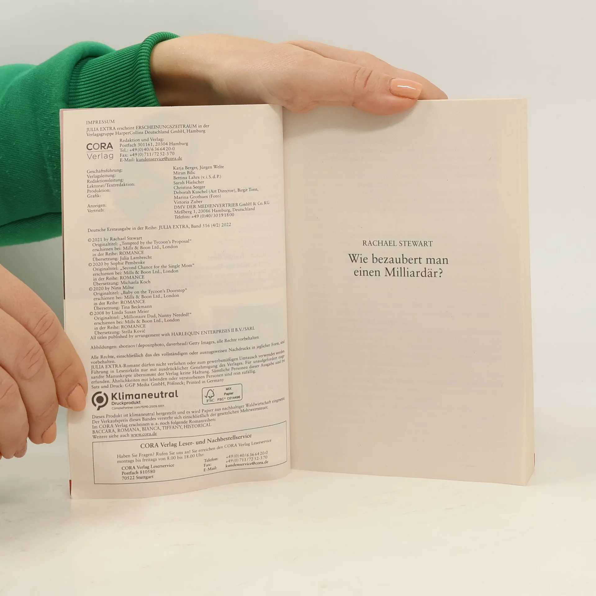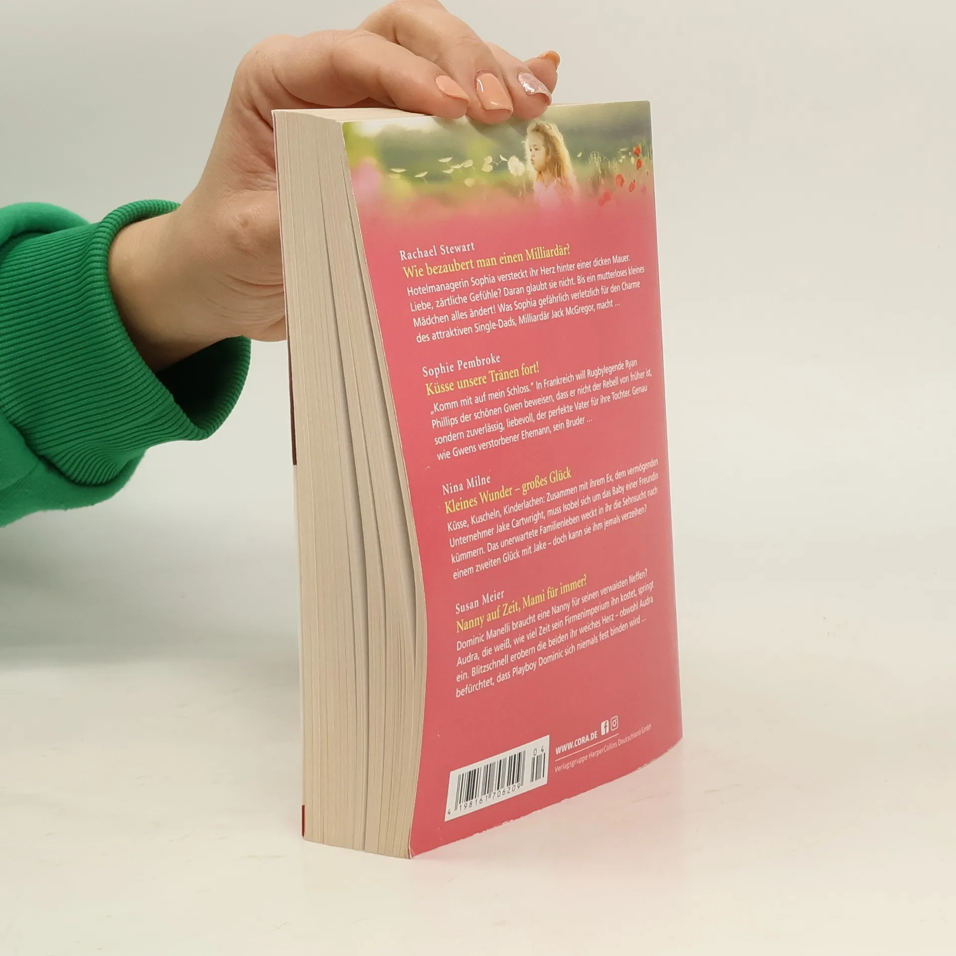 WIE BEZAUBERT MAN EINEN MILLIARDÄR?von RACHAEL STEWART Hotelmanagerin Sophia versteckt ihr Herz hinter einer dicken Mauer. Liebe, zärtliche Gefühle? Daran glaubt sie nicht. Bis ein mutterloses kleines Mädchen alles ändert! Was Sophia gefährlich verletzlich für den Charme des attraktiven Single Dads, Milliardär Jack McGregor, macht ... KÜSSE UNSERE TRÄNEN FORT! von SOPHIE PEMBROKE „Komm mit auf mein Schloss.“ In Frankreich will Rugbylegende Ryan Phillips der schönen Gwen beweisen, dass er nicht der Rebell von früher ist, sondern zuverlässig, liebevoll, der perfekte Vater für ihre Tochter. Genau wie Gwens verstorbener Ehemann, sein Bruder ... KLEINES WUNDER – GROSSES GLÜCK von NINA MILNE Küsse, Kuscheln, Kinderlachen: Zusammen mit ihrem Ex, dem vermögenden Unternehmer Jake Cartwright, muss Isobel sich um das Baby einer Freundin kümmern. Das unerwartete Familienleben weckt in ihr die Sehnsucht nach einem zweiten Glück mit Jake – doch kann sie ihm jemals verzeihen? NANNY AUF ZEIT, MAMI FÜR IMMER? von SUSAN MEIER Dominic Manelli braucht eine Nanny für seinen verwaisten Neffen? Audra, die weiß, wieviel Zeit sein Firmenimperium ihn kostet, springt ein. Blitzschnell erobern die beiden ihr weiches Herz – obwohl Audra befürchtet, dass Playboy Dominic sich niemals fest binden wird ...