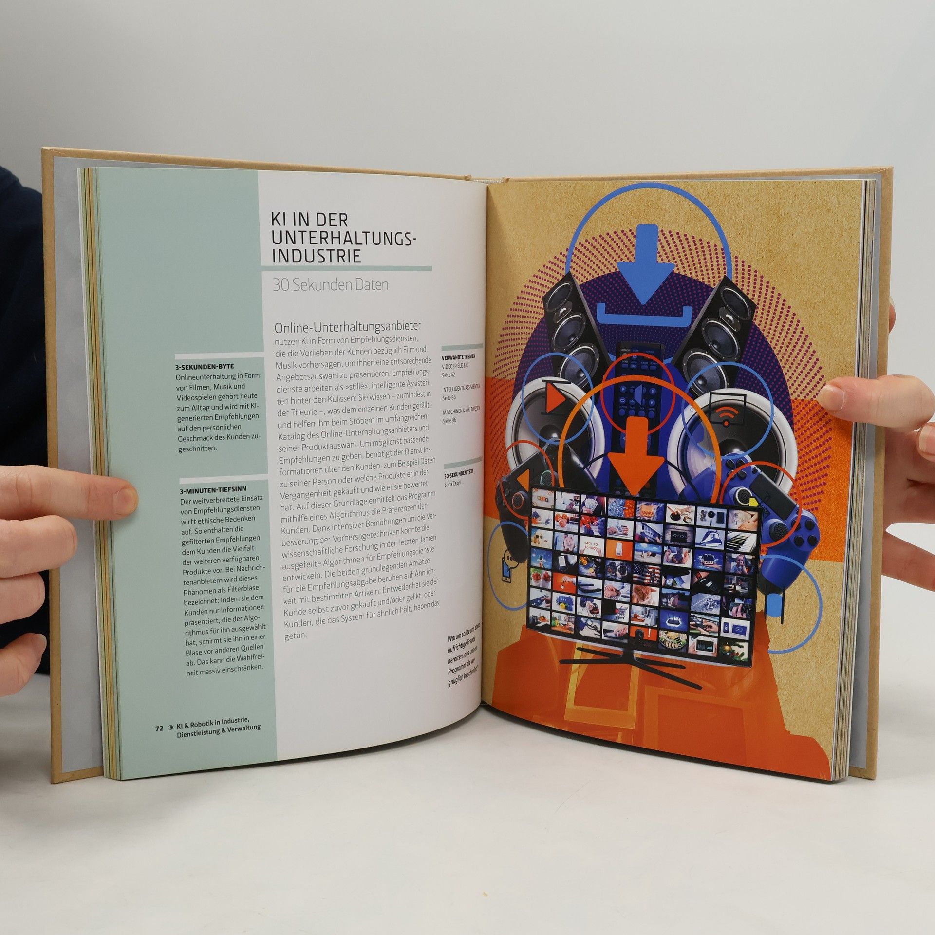 Künstliche Intelligenz & Robotik in 30 Sekunden geht in 50 kurzen Kapiteln den Fragen zu diesem Thema nach. Jedes Kapitel beleuchtet in Wort und Bild jeweils ein Thema, das uns die tiefgreifenden Veränderungen in unserem Verständnis von Alltag, Geist und Körper kurz und prägnant vor Augen führt. Biografien von Persönlichkeiten und Illustrationen helfen dem Leser, sich in der Welt der Computer, Roboter und perfektionierten Menschen zurechtzufinden.