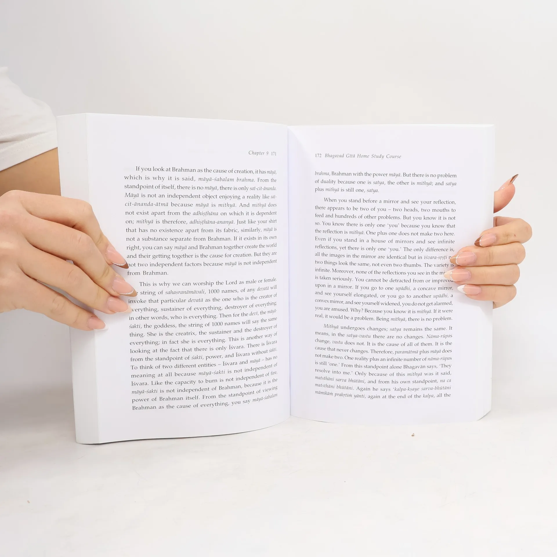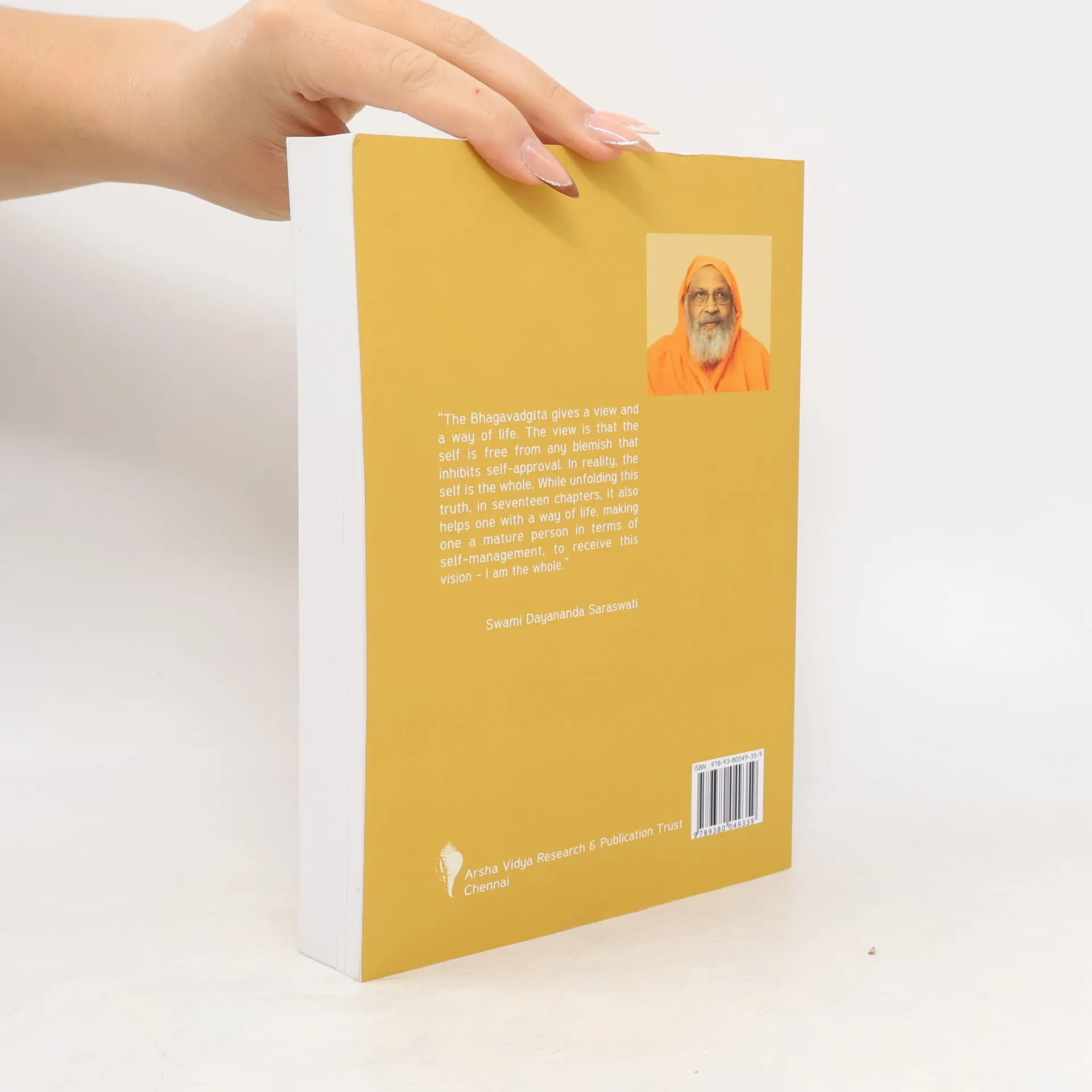 Swami Dayananda's Bhagavad Gita Home Study Course is an edited transcript of classroom talks of Swami Dayananda Saraswati. It is a unique set of 9 books of over 4100 pages which goes comprehensively through all the chapters and verses of the Bhagavad Gita with a word to word translation in English from Sanskrit and an elaborate explanation of Swami Dayananda based on Adi Shankara's commentary. Each verse is unfolded with clarity in such detail as to make the reader feel he/she is sitting in the class room. "The Bhagavad Gita gives a view and way of life. The view is that the self is free from any blemish that inhibits self-approval. In reality, the self is the whole. While unfolding this truth in seventeen chapters, it also helps one with a way of life, making one a mature person in terms of self-management, to receive this vision - I am the whole." Swami Dayananda Saraswati