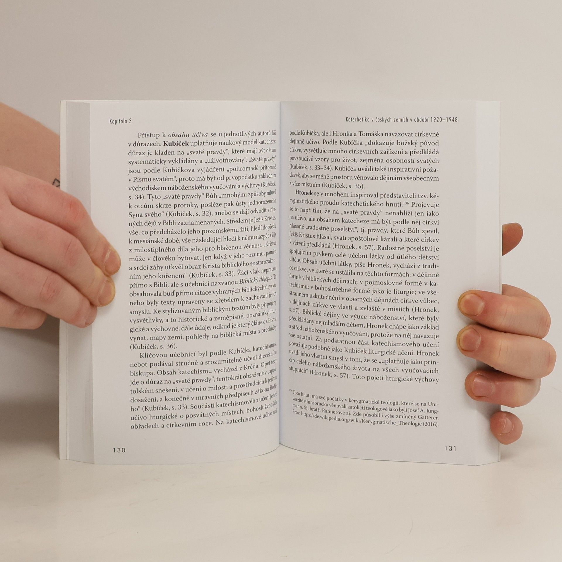 Katechetika je vědním oborem na pomezí mezi teologií a pedagogikou. Je zaměřena na praxi, a proto patří k pastorálním teologickým oborům. Jako teologický obor zkoumá způsob Božího jednání s člověkem, reflektuje ho a stanovuje principy, obsahy a metody katechetického působení církve ve výchově křesťanské víry člověka. I když v dnešní době je zájem o tento obor spíše nepatrný, čtenáře knihy může překvapit, jak živé dění je možné objevit v poměrně nedávné minulosti a kolik zajímavých a cenných přístupů a cest nás může inspirovat i dnes. Studie mapuje období více než sedmdesáti let: charakterizuje toto období, uvádí přehledy učitelů katechetiky na teologických fakultách a představuje jejich dílo, snaží se upozornit na způsoby hledání i na nalezené a ověřované cesty. Zahrnuje práci nejen specializovaných katechetiků, ale i dalších českých teologů, které náročné společenské podmínky přiměly angažovat se v pastorační praxi. Je zachycen i vliv zahraničních autorů, jejichž díla byla přeložena a zpřístupněna formou samizdatu. Historie je koneckonců nenahraditelnou učitelkou a její zkoumání dobrodružstvím, které může zaujmout i širší okruh čtenářů, pokud jim výchova víry leží na srdci.