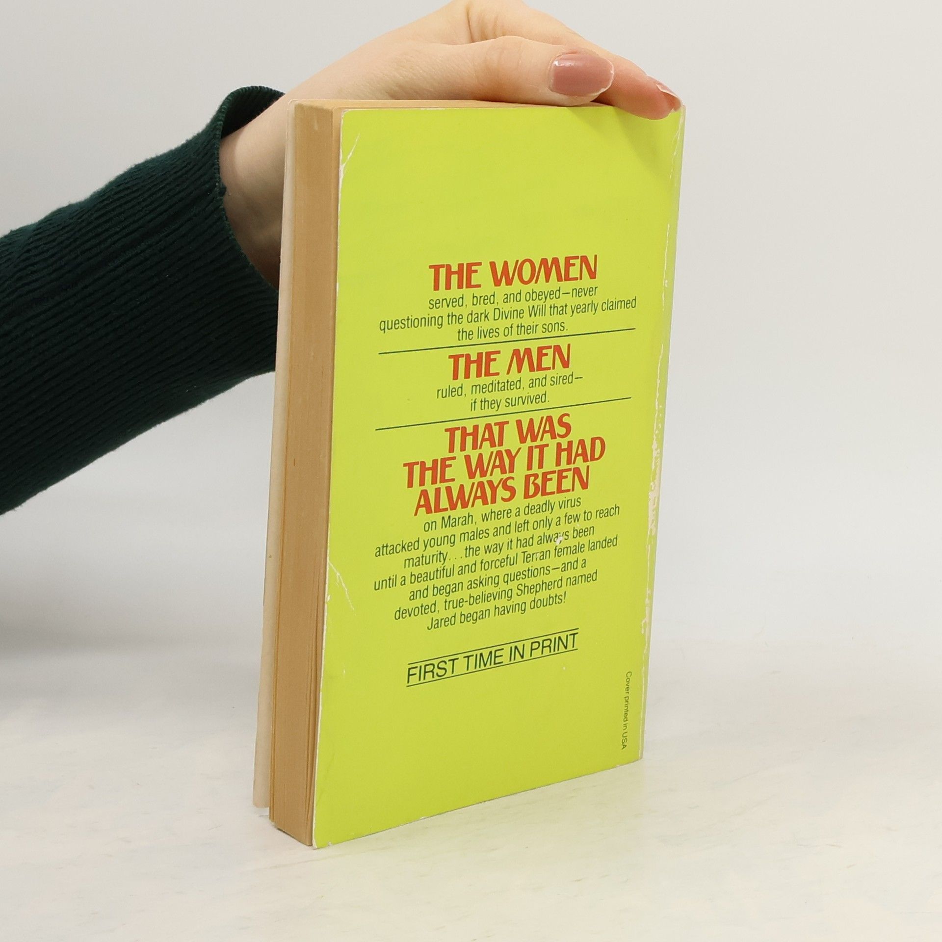 THE WOMEN served, bred, and obeyed — never questioning the dark Divine Will that yearly claimed the lives of their sons.THE MEN ruled, meditated, and sired — if they survived.THAT WAS THE WAY IT HAD ALWAYS BEEN on Marah, where a deadly virus attacked young males and left only a few to reach maturity... the way it had always been until a beautiful and forceful Terran female landed and began asking questions — and a devoted, true-believing Shepherd named Jared began having doubts!