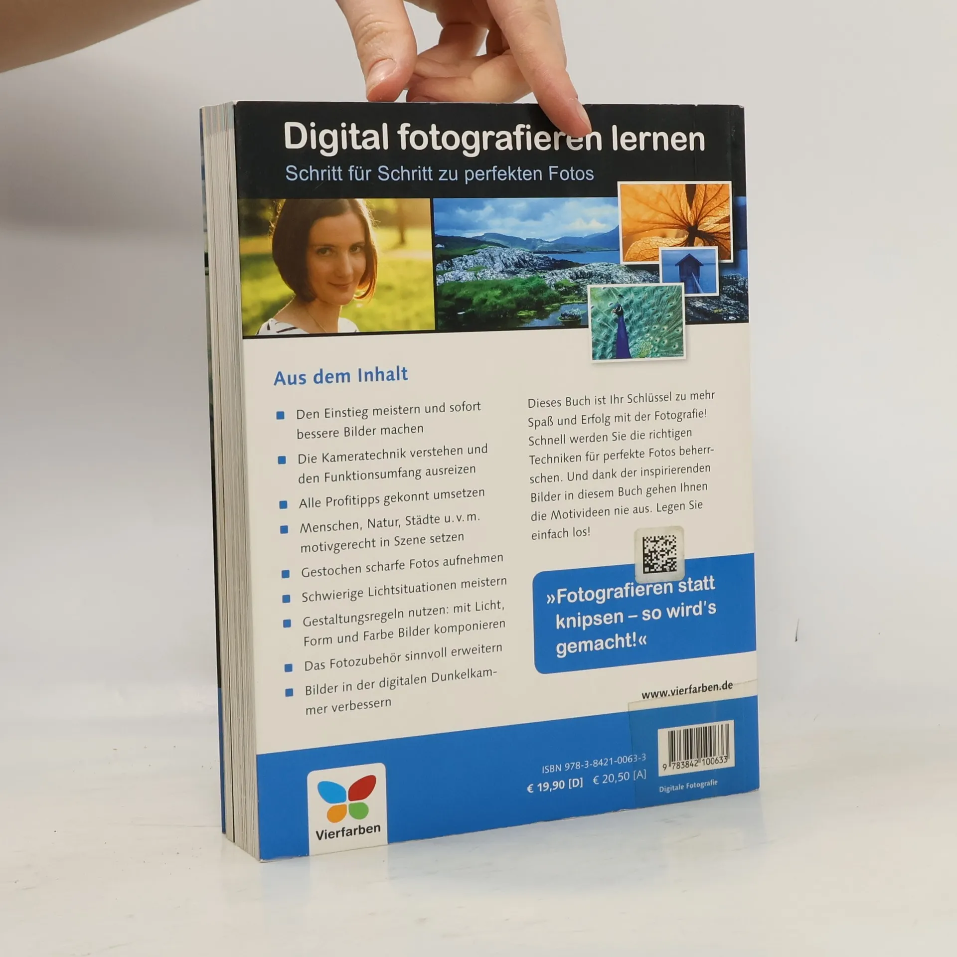 Fotografieren statt knipsen – so wird's gemacht! Dieser Fotokurs für Ein- und Aufsteiger zeigt Ihnen alles, was Sie brauchen, um endlich Fotos zu machen, die begeistern. Dabei erklärt Ihnen der Autor alles leicht verständlich und mit vielen Schritt-für-Schritt-Anleitungen. So setzen Sie das Gelesene schnell in Ihre Fotopraxis um. Porträtieren Sie Menschen, fangen Sie die Schönheit der Natur ein, erkunden Sie die Makrofotografie und vieles mehr – dieses Buch ist Ihr Schlüssel für mehr Spaß und Erfolg mit der digitalen Fotografie! Aus dem Inhalt: Die digitale Kamera: Von A bis Z erklärt Das Objektiv: So wichtig wie die Kamera Ohne Licht kein Bild: Die richtige Belichtung Scharfe Fotos: Den Fokus gezielt setzen Klares Weiß und schöne Farben Sinnvolles Zubehör und Kamerapflege Motive sehen und Bilder gestalten Menschen fotografieren Action- und Veranstaltungsfotos Natur- und Landschaftsbilder In der Stadt unterwegs Tiere fotografieren Makrofotografie Panorama und HDR Fotografiert, und dann: Die digitale Dunkelkammer Glossar: Wichtige Fachbegriffe kurz erklärt