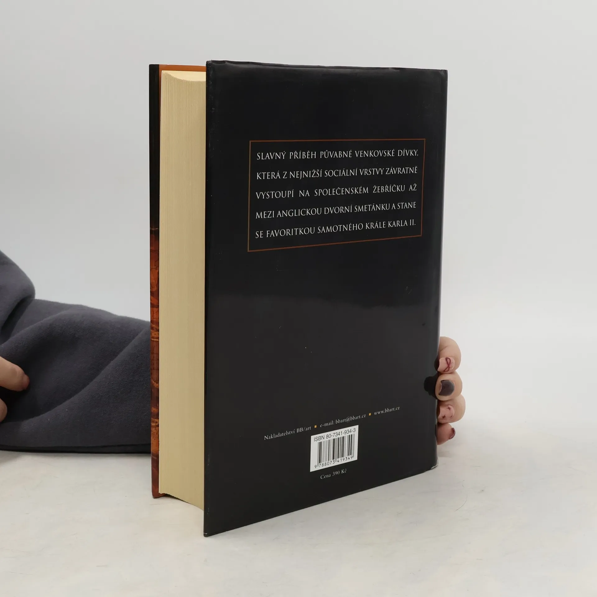 Slavný příběh půvabné venkovské dívky, která z nejnižší sociální vrstvy závratně vystoupí na společenském žebříčku až mezi anglickou dvorní smetánku a stane se favoritkou samotného krále Karla II. V široce komponované románové fresce ze sedmnáctého století rozvinula autorka podivuhodně barvitý, strhující děj. Do velké politiky, závažných společenských konfliktů a osudových událostí, jakými jsou válka s Holandskem, požár Londýna a morová epidemie, vstupují nesčetná dramata osobní, lidská. Autorčin pohled je přitom víc než na otevřenou scénu upřen do zákulisí, kam běžný smrtelník nevidí.